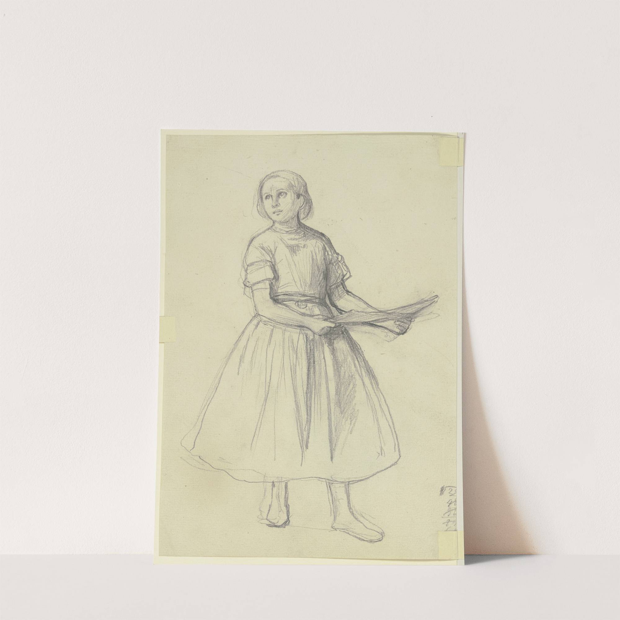 Bauernmädchen mit weitem Rock und einem Papierbogen by Jakob Becker - Wall Art Print