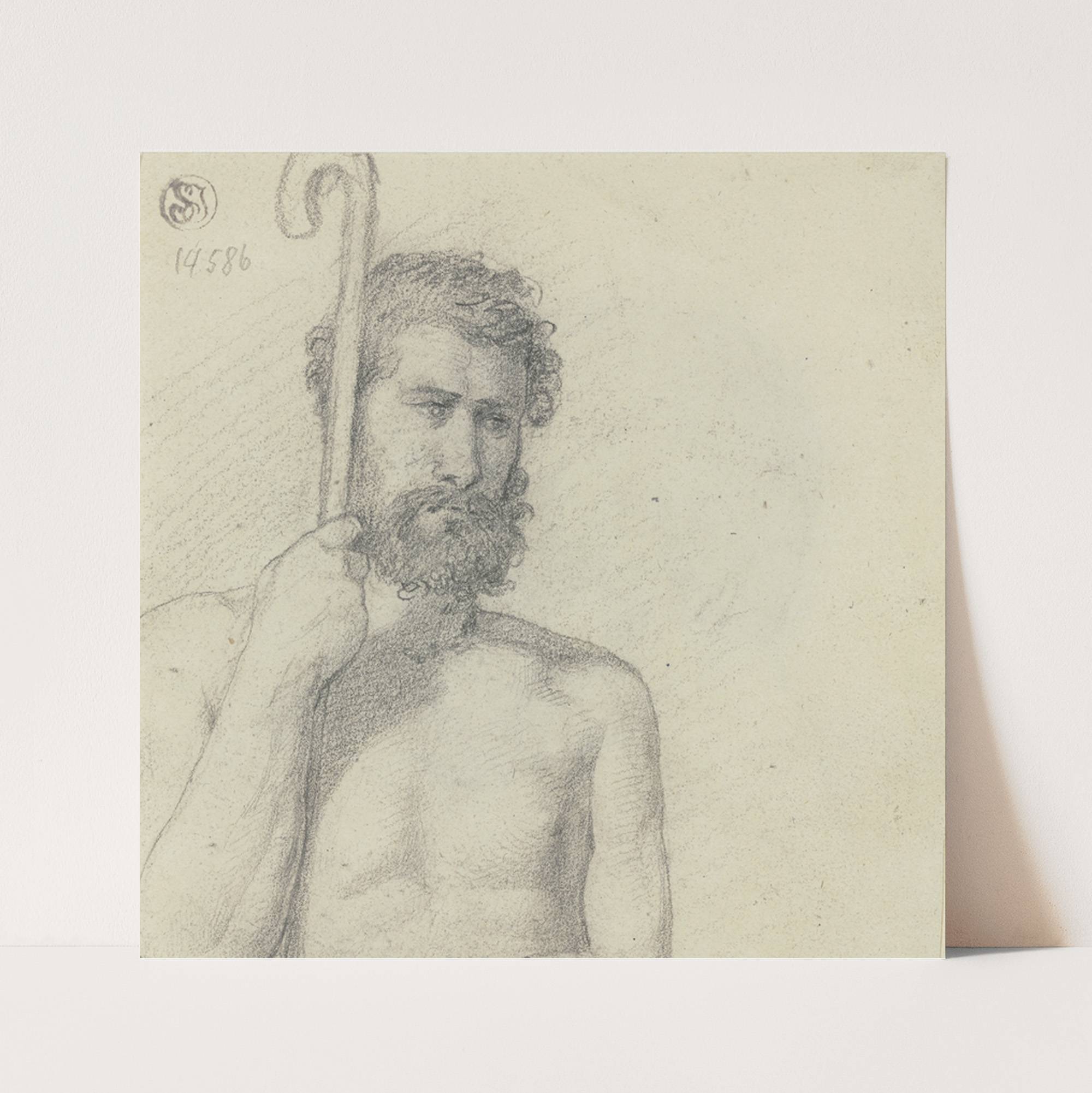 Halbfiguriger Männerakt mit Hirtenstab by Jakob Becker - Wall Art Print