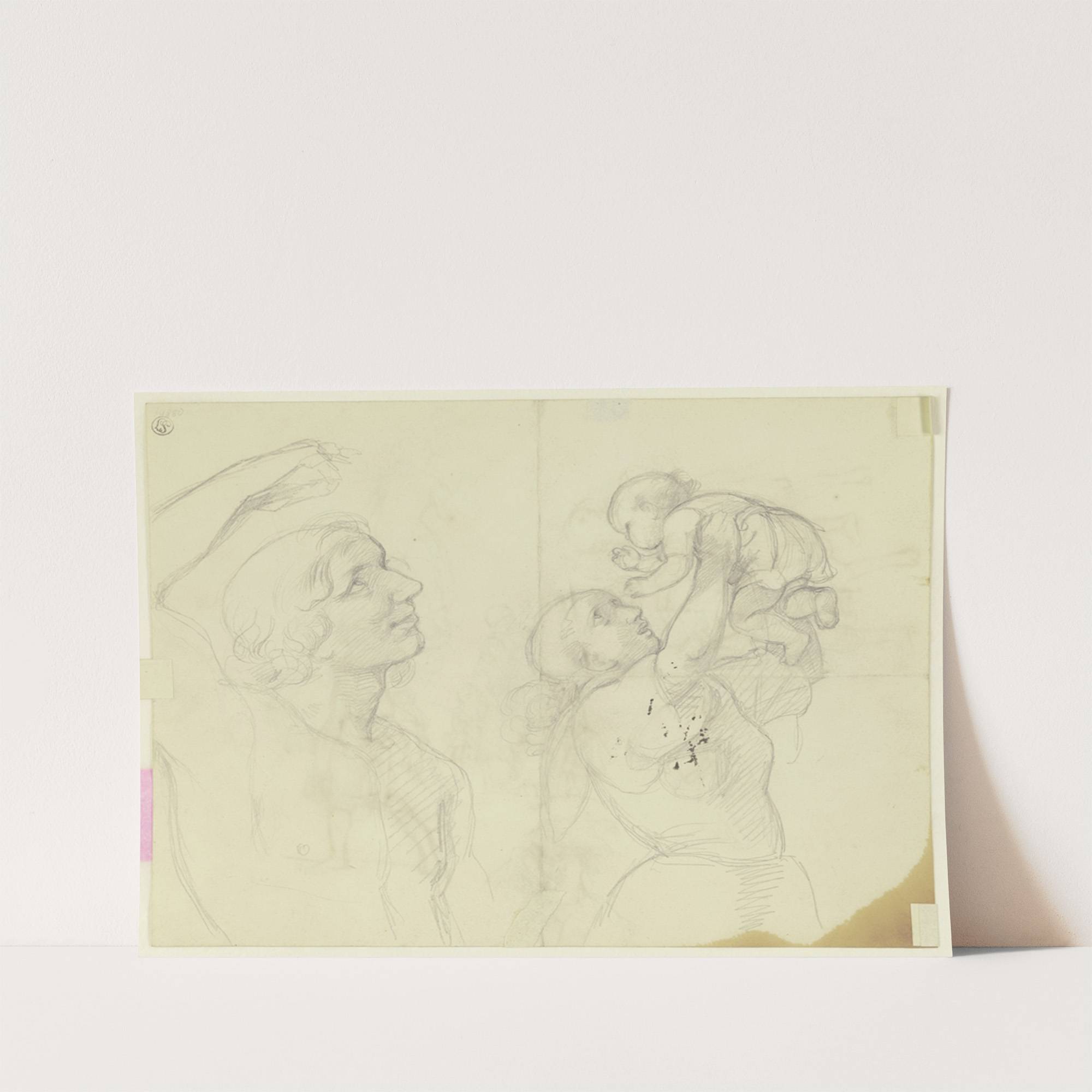 Knabenakt, eine Blume überreichend by Jakob Becker - Wall Art Print