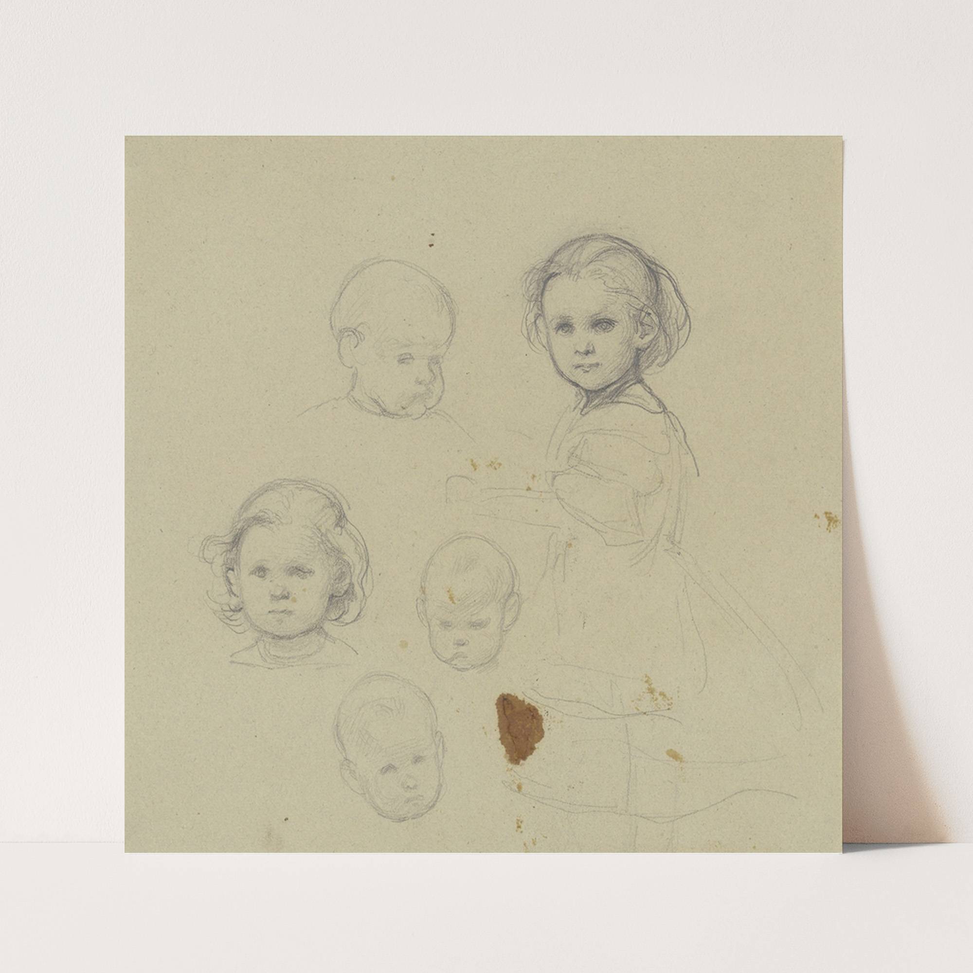Studienblatt; Aufblickendes Bauernmädchen sowie ein Menschenauflauf by Jakob Becker - Wall Art Print