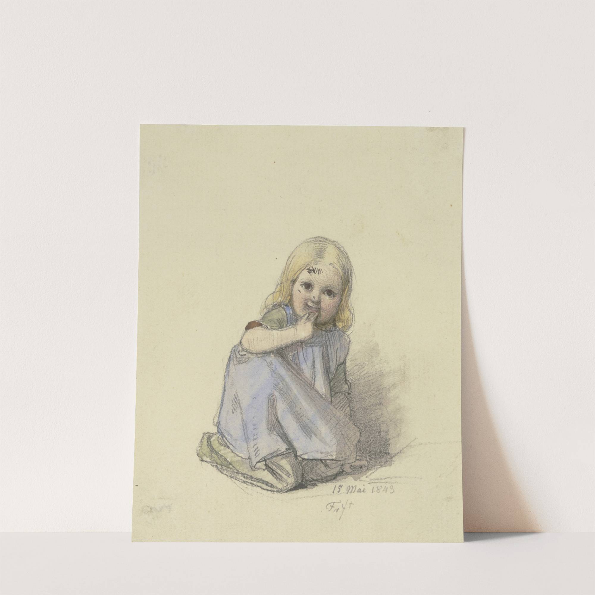 Kauerndes Mädchen en face by Jakob Fürchtegott Dielmann - Wall Art Print