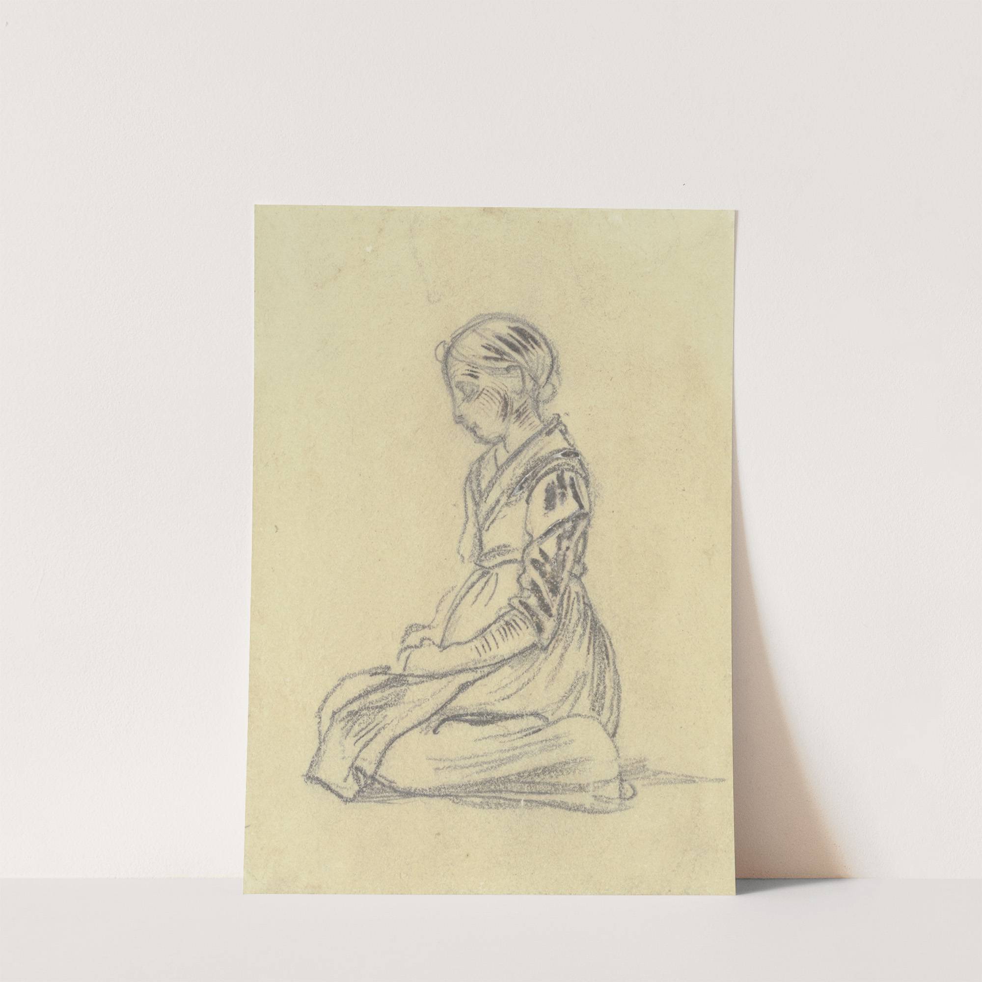 Kniendes Mädchen mit gesenktem Kopf im Profil nach links by Jakob Fürchtegott Dielmann - Wall Art Print