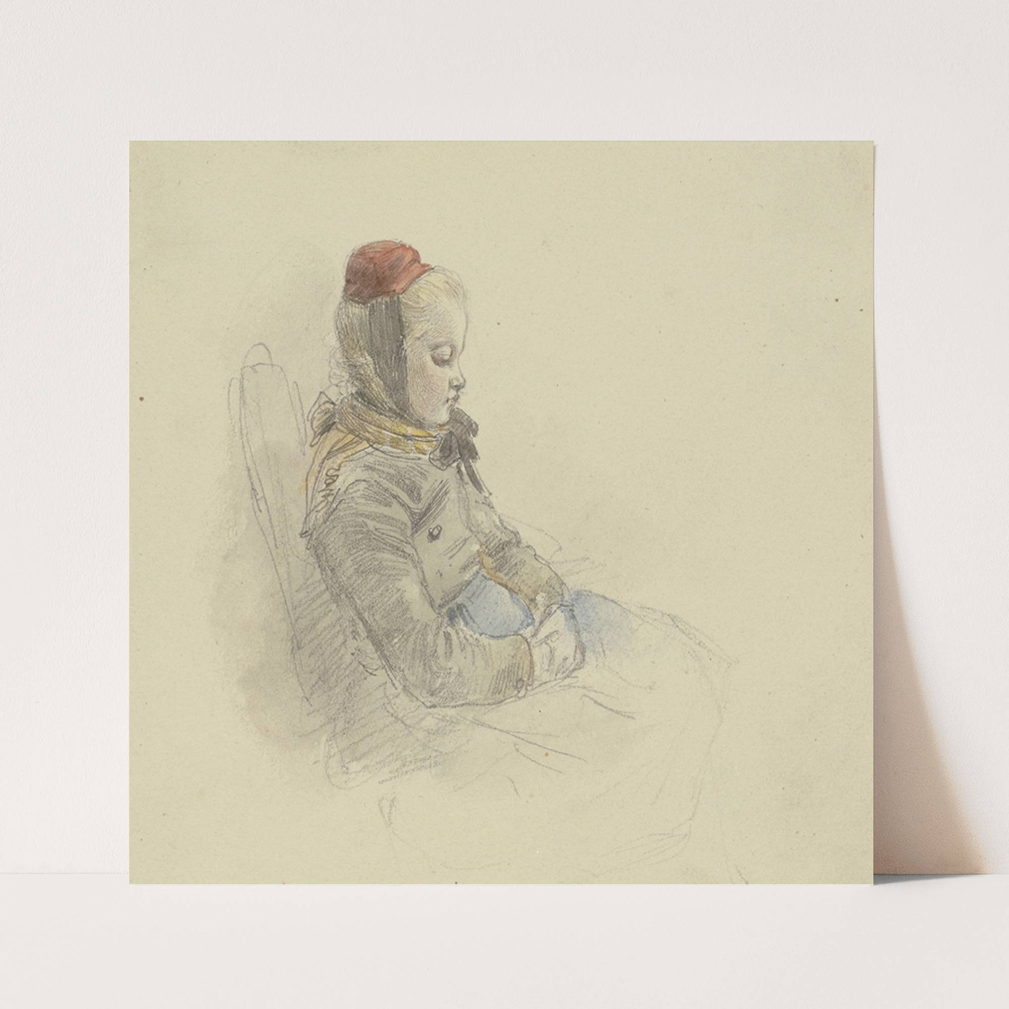 Mädchen mit niedergeschlagenem Blick auf einem Stuhl sitzend nach rechts by Jakob Fürchtegott Dielmann - Wall Art Print