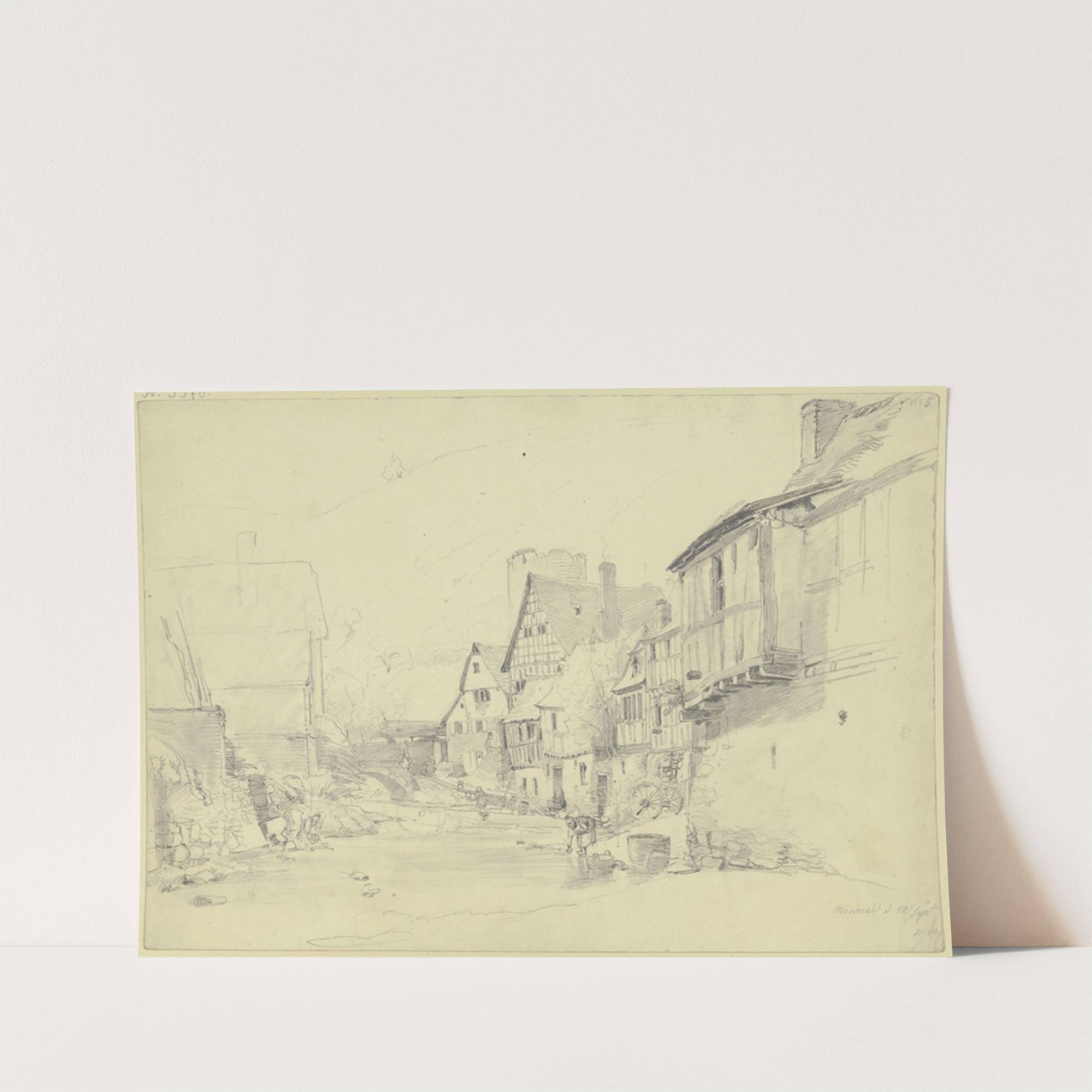 Straße mit breitem Bach, an dem zwei Frauen waschen by Jakob Fürchtegott Dielmann - Wall Art Print