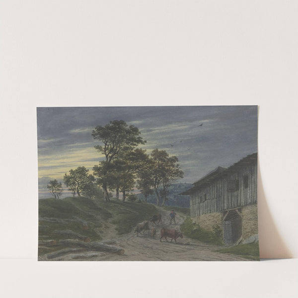 Rückkehr der Herde zum Stall am Abend by Jakob Maurer - Wall Art Print