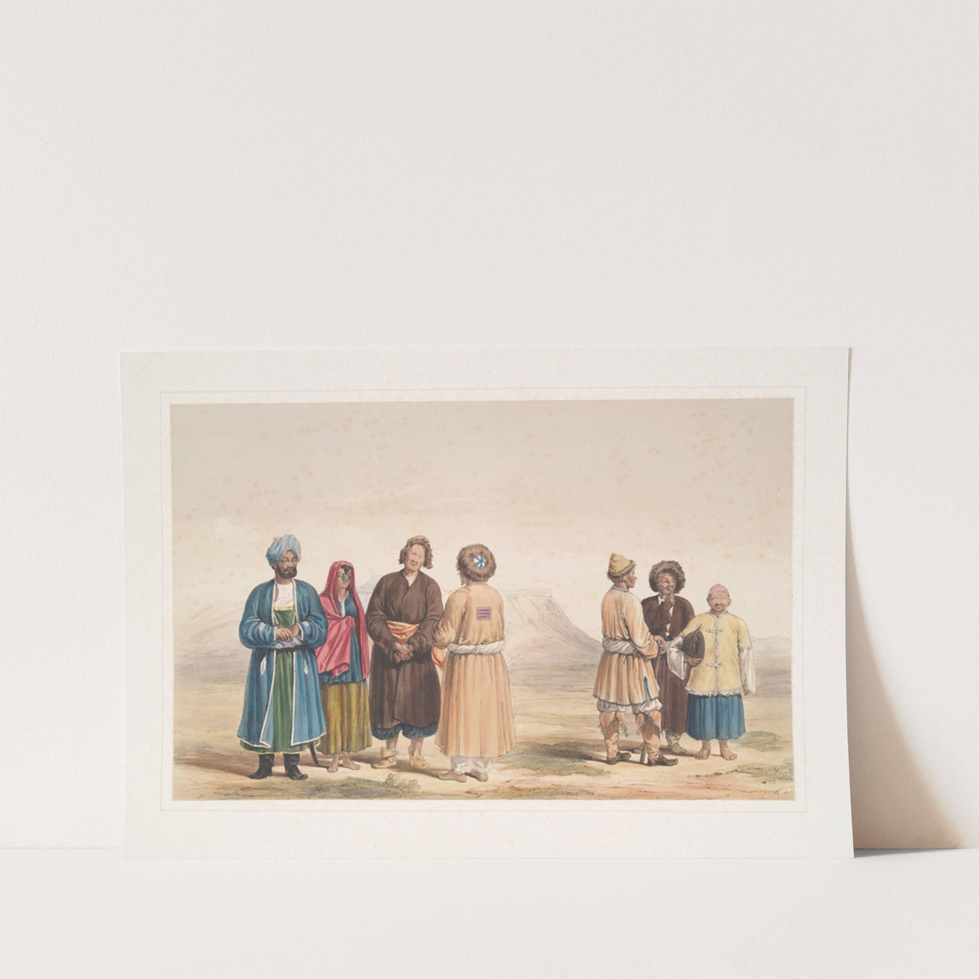 Fort of Kelat-e-Giljee, a chieftain & female of the Giljee tribe & Huzzareh peasants (1843) by James Atkinson - Wall Art Print