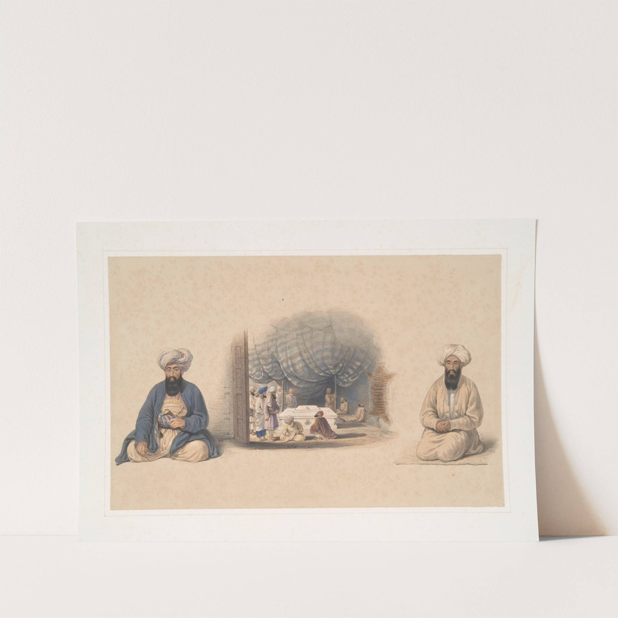 Interior of the tomb of Sultan Mahmood, Guznee; Khan Sheereen Khan, chief of the Juwansheer Kuzzilbashos; Hajee Khan, Kauker (1843) by James Atkinson - Wall Art Print