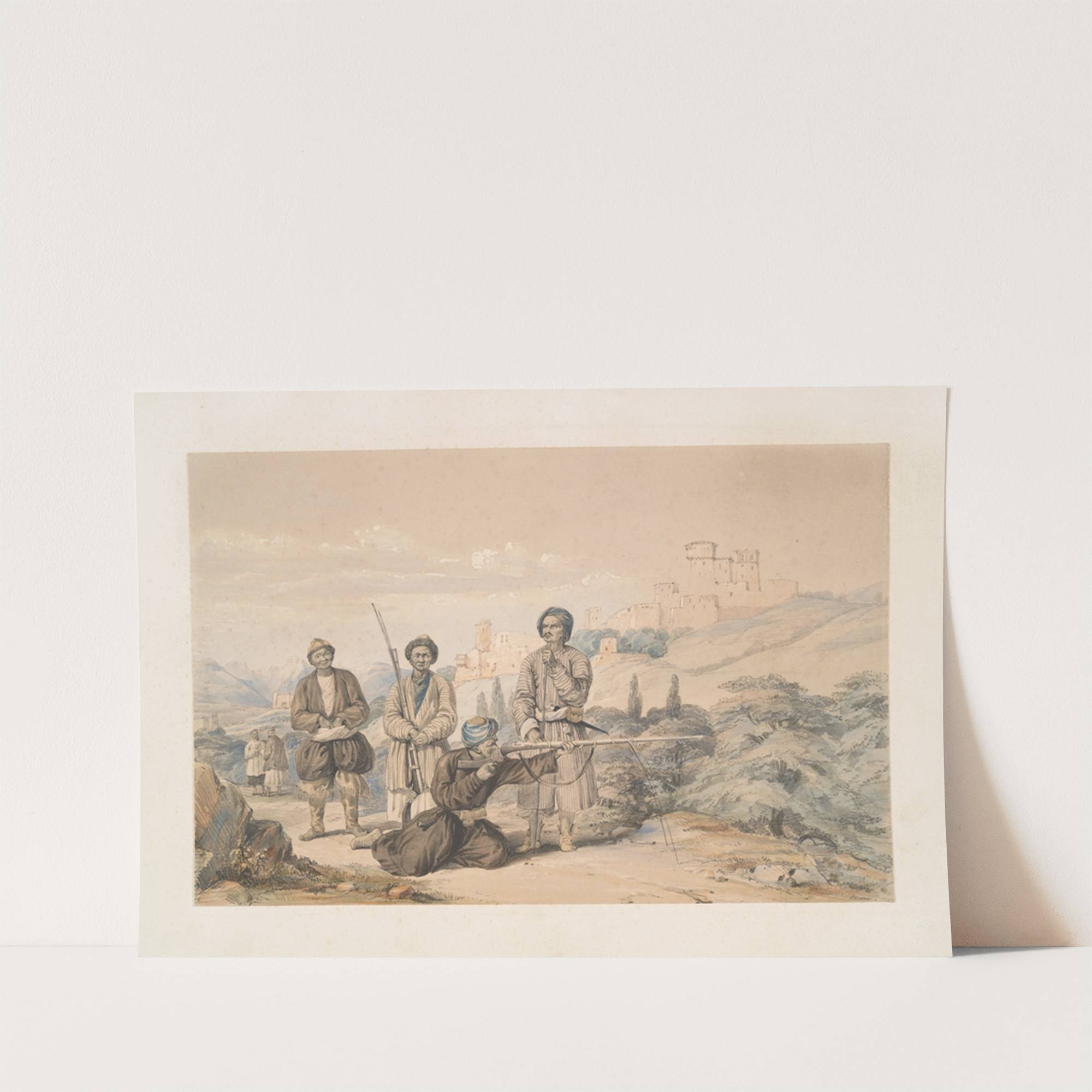 Perganeh, near Istalif; Huzzareh’s firing with Juzzaeels (1843) by James Atkinson - Wall Art Print