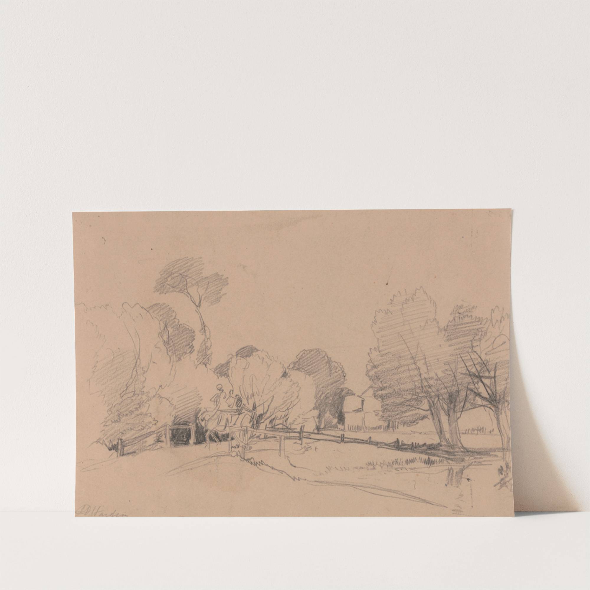Willows by a Stream, Horse and Cart Crossing Bridge