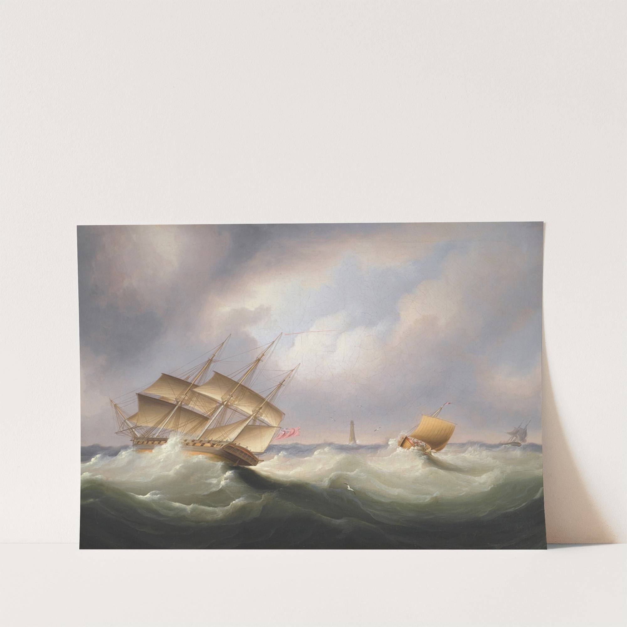 Frigate Off A Lighthouse (1875) by James Edward Buttersworth - Wall Art Print
