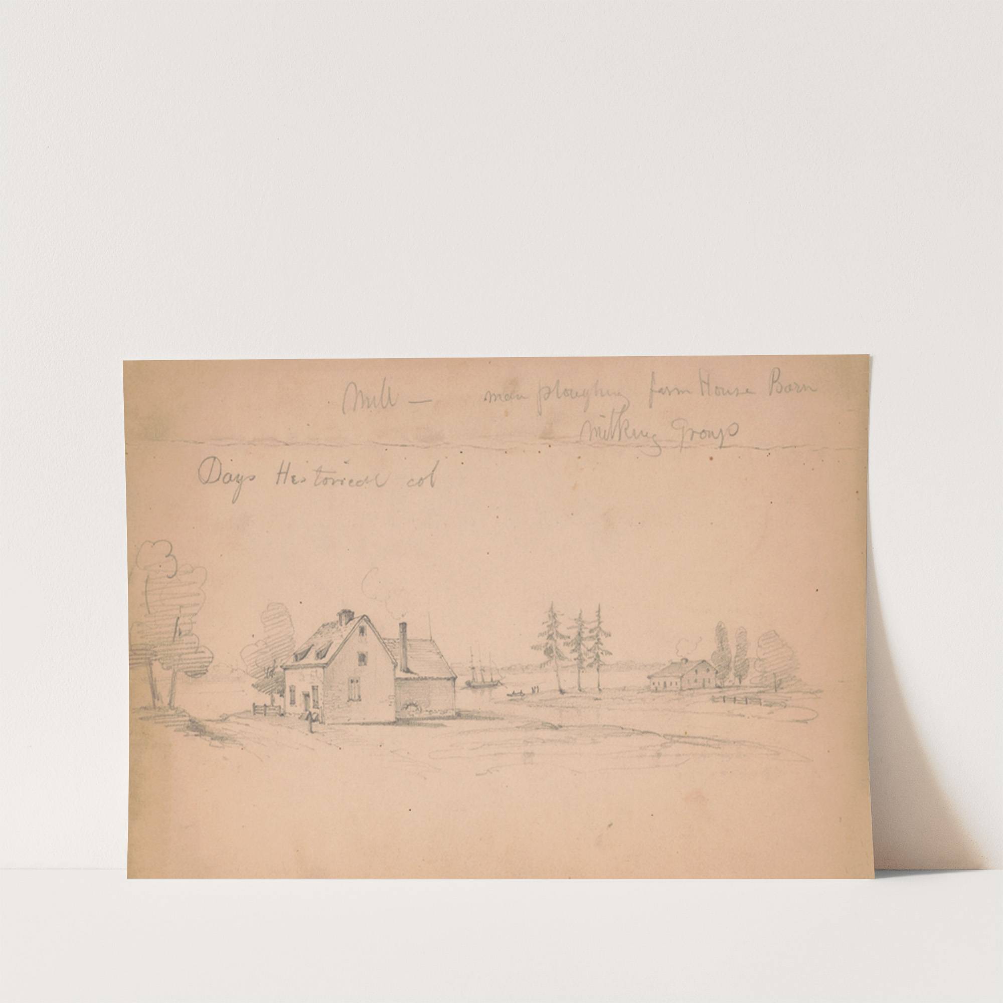 Days historical col. Mill – men ploughing farm house barn – milking group. (1840-1870) by James Fuller Queen - Wall Art Print