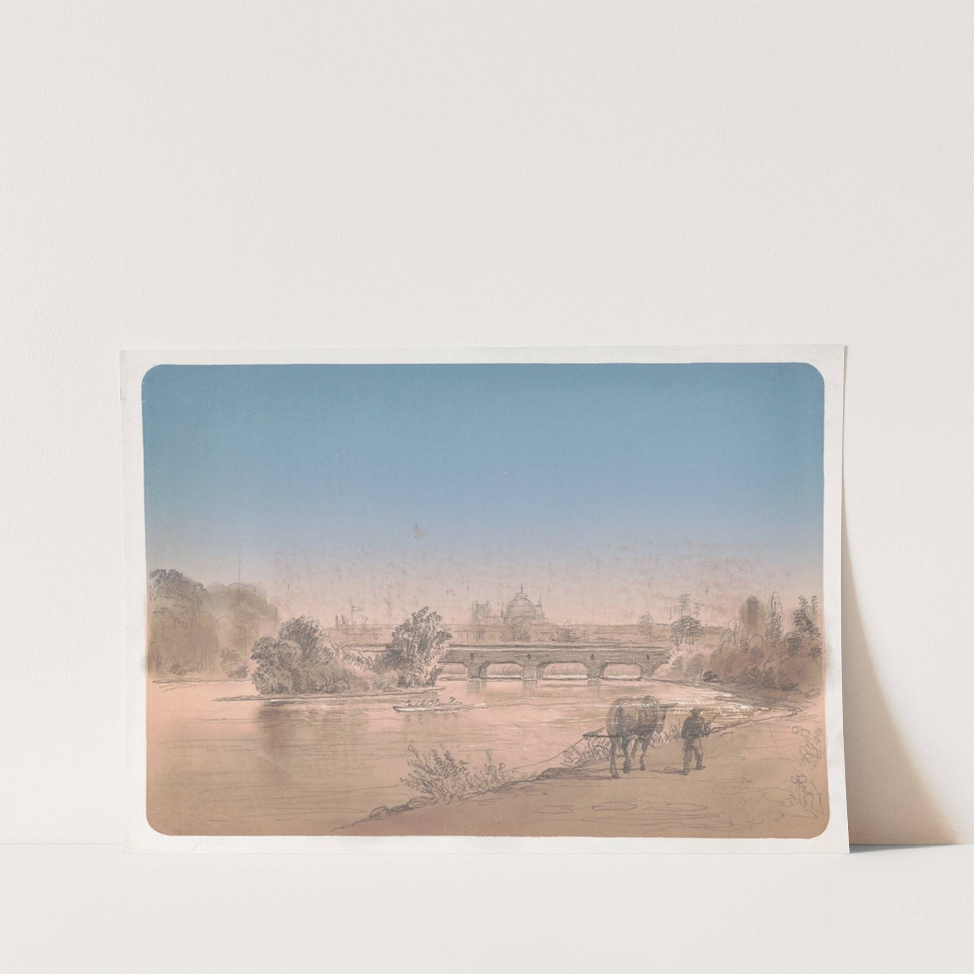 Man walking with mule on a footpath along the shore of the Schuylkill River (1873-1876) by James Fuller Queen - Wall Art Print