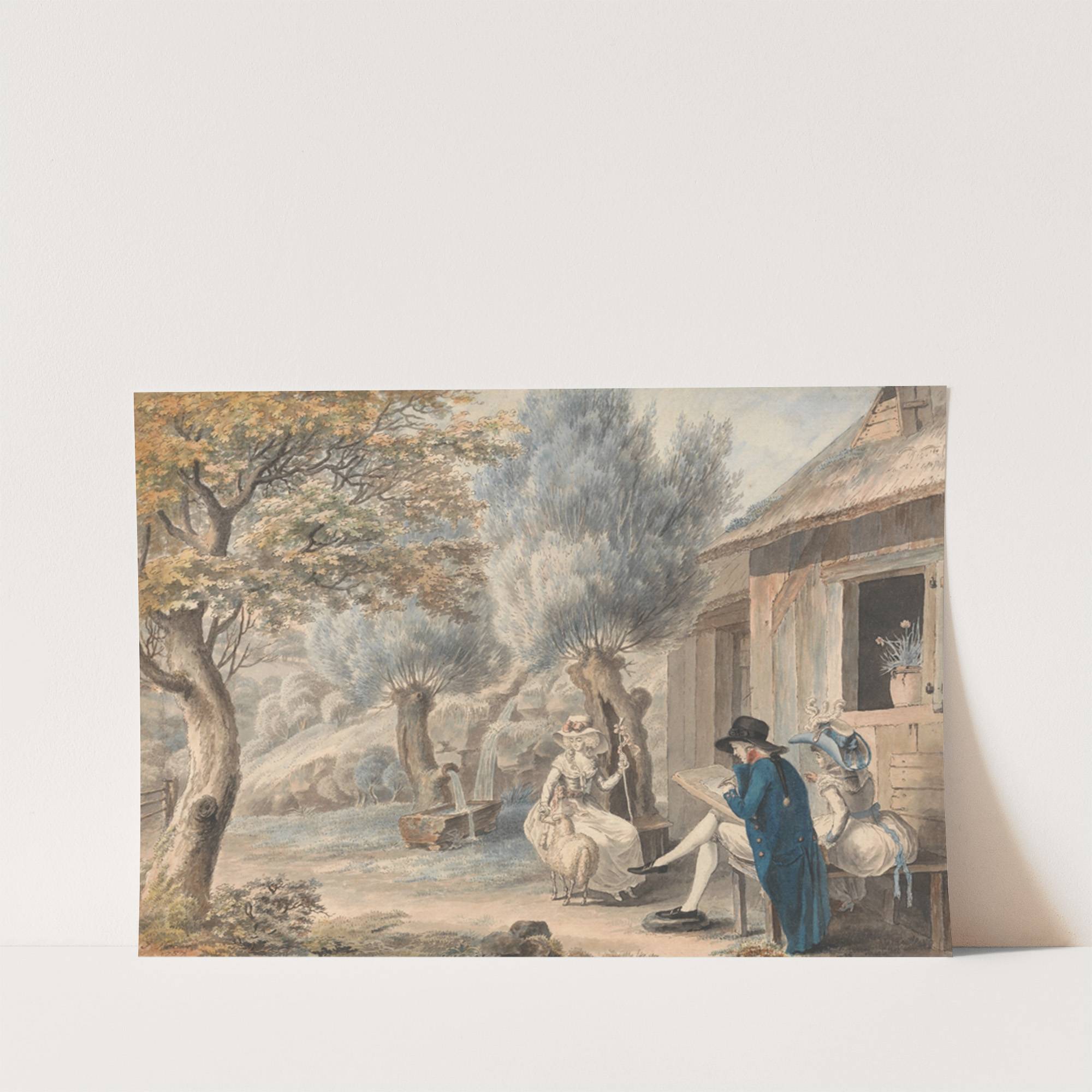 The Artist Sketching Mlle. de St. Legier as a Shepherdess by James Moore - Wall Art Print