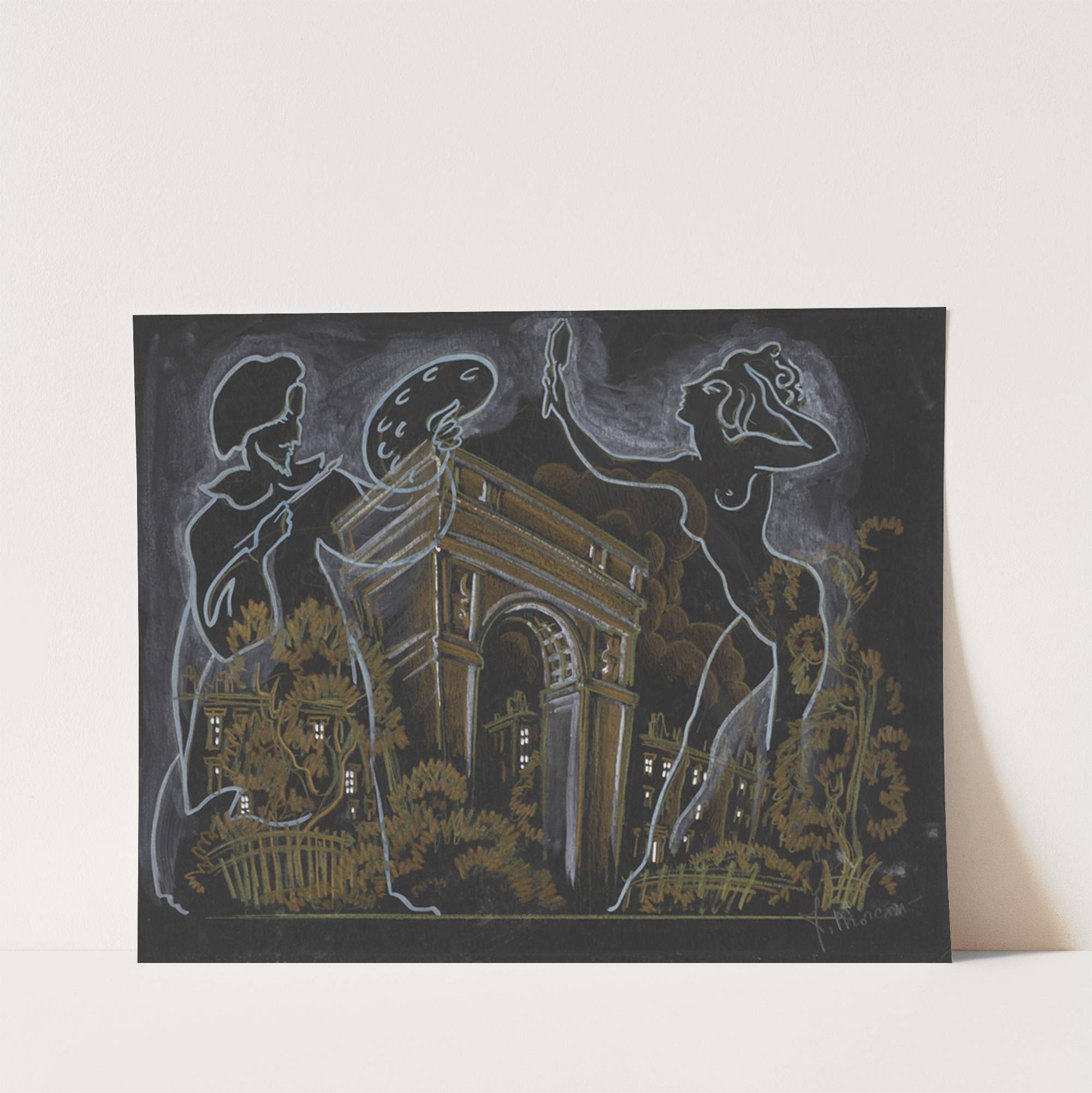 Vaudeville: Artist and Nude Model Outlined over Image of Washington Square Park Archway (1934-1943) by James Stewart Morcom - Wall Art Print