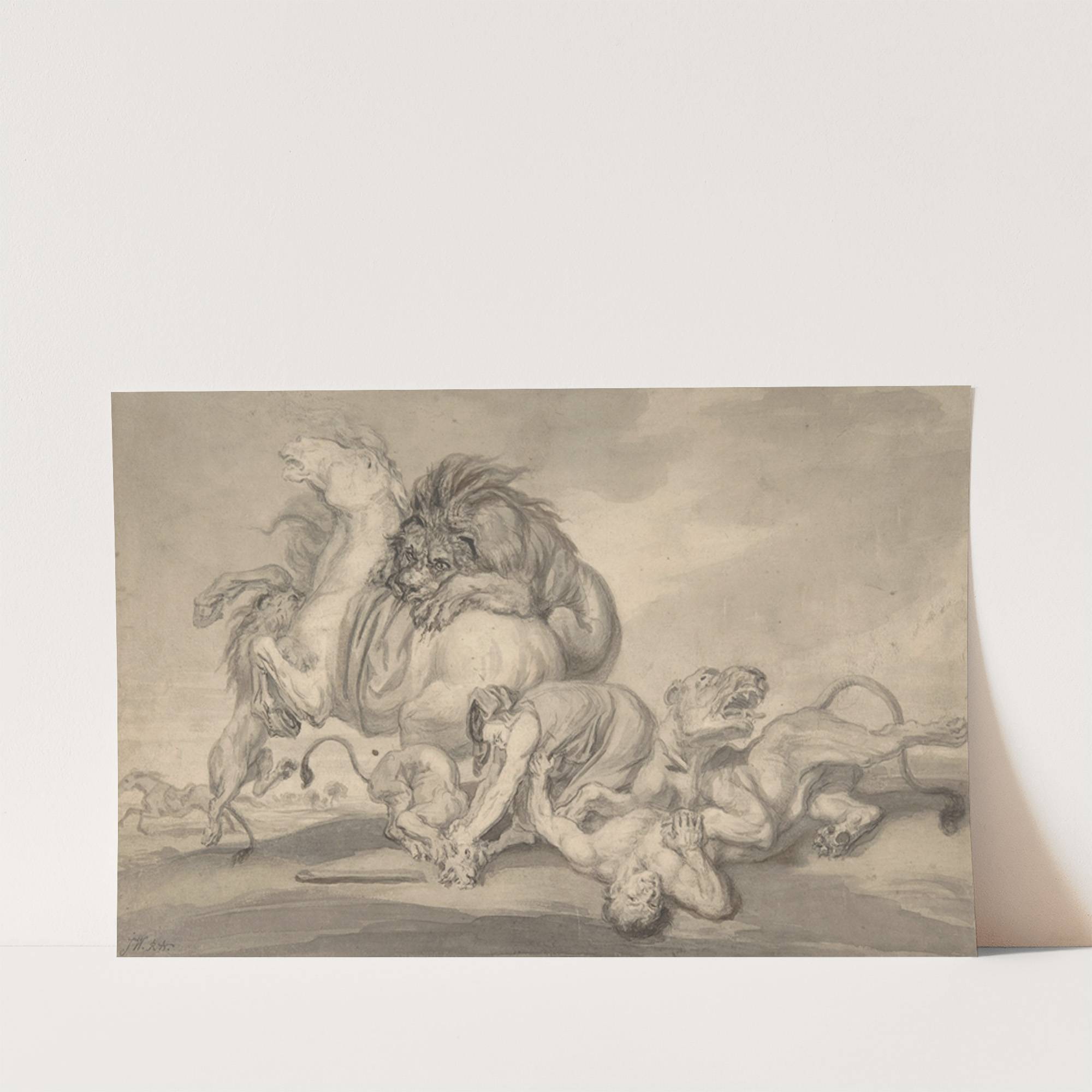 Lions Attacking Two Men and a Horse by James Ward - Wall Art Print