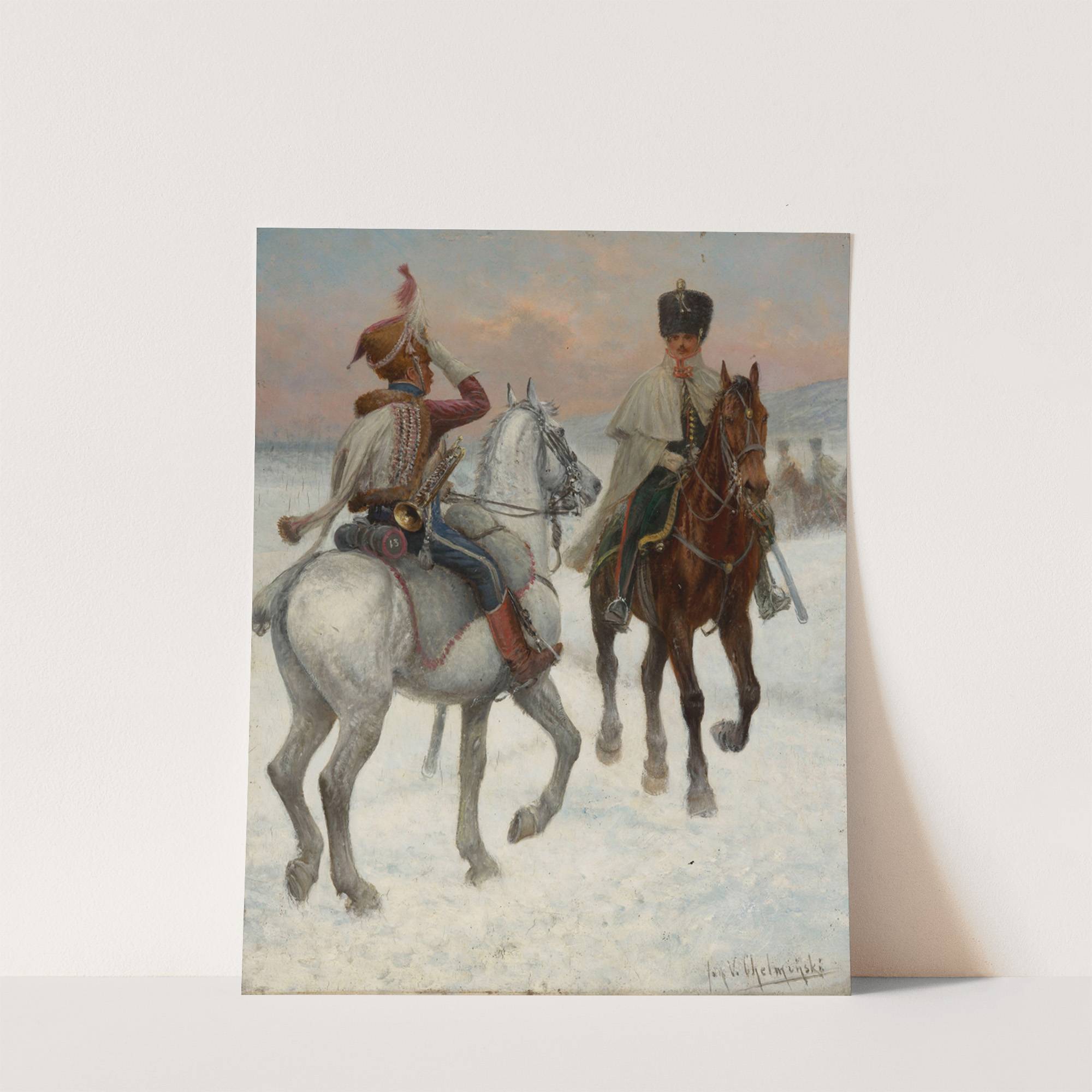 Bugler of the 13th Hussar Regiment, Officer of the 1st Mounted Rifles Regiment by Jan Chełmiński - Wall Art Print