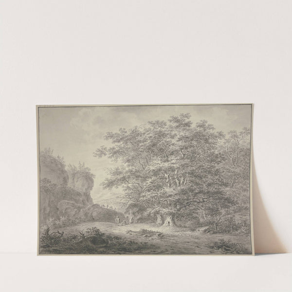 Waldpartie, links Felsen über welche zwei Maultiere mit ihren Führern kommen by Jan Evert Grave - Wall Art Print