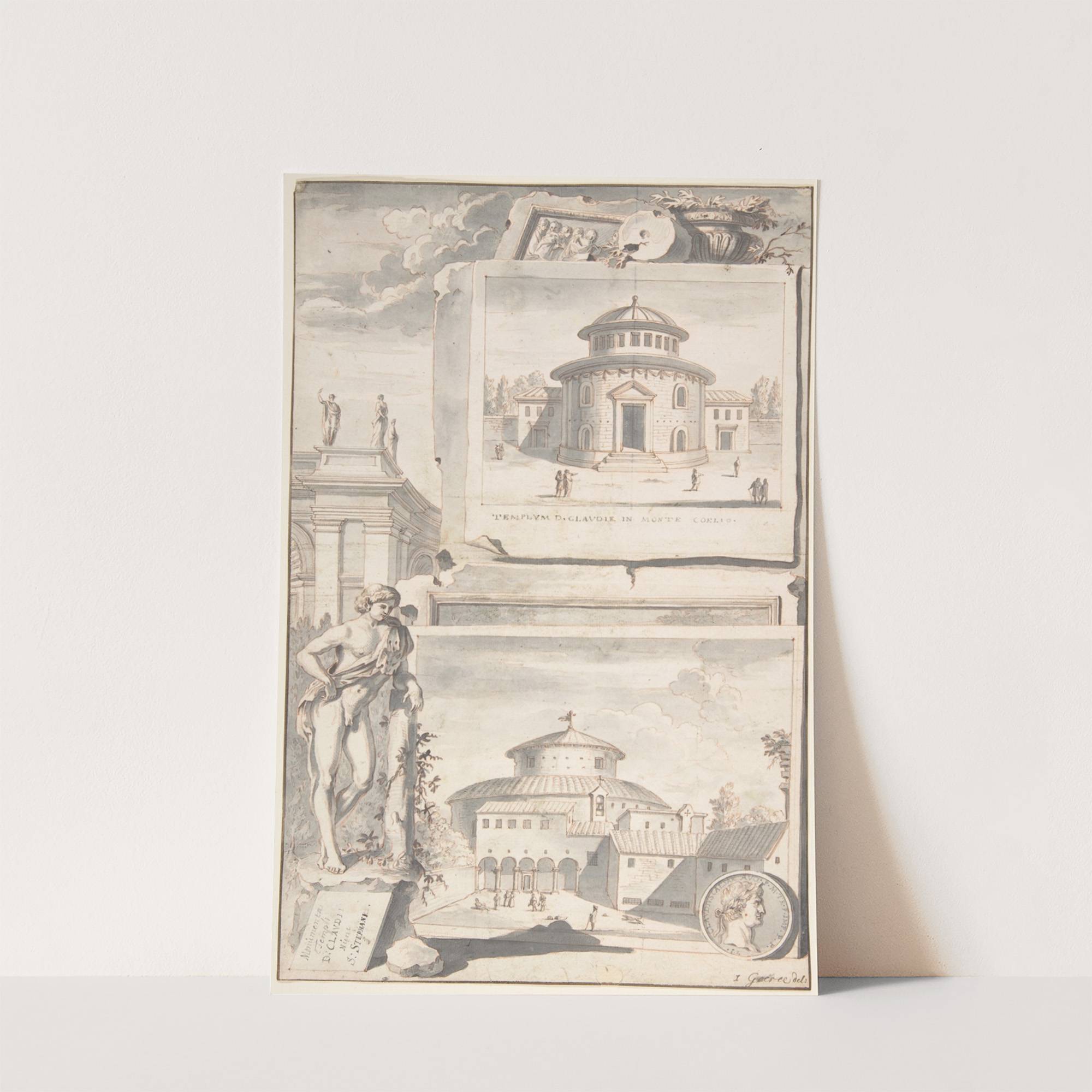 A Reconstruction of the Temple of Divus Claudius in Monte Coelio (above) and a View of the Ruins (below) by Jan Goeree - Wall Art Print