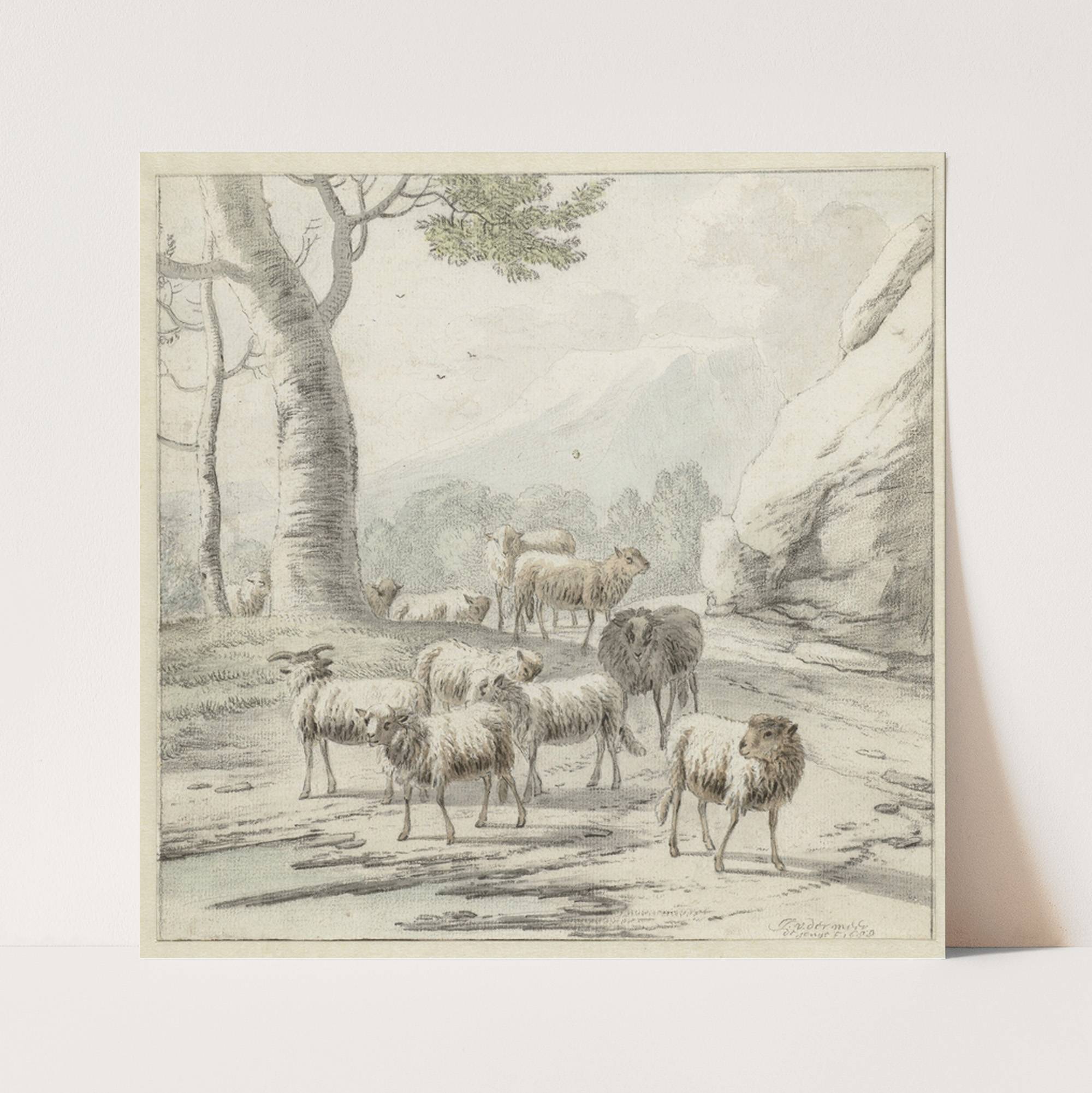 Landscape with a Flock of Sheep near a Tree by Jan van der Meer the Younger - Wall Art Print