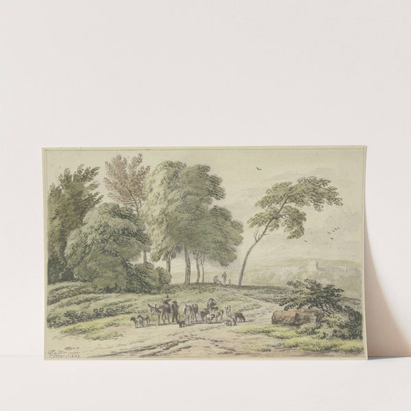 An einer Baumgruppe zwei Eselstreiber von hinten by Jan Vermeer van Haarlem the Elder - Wall Art Print