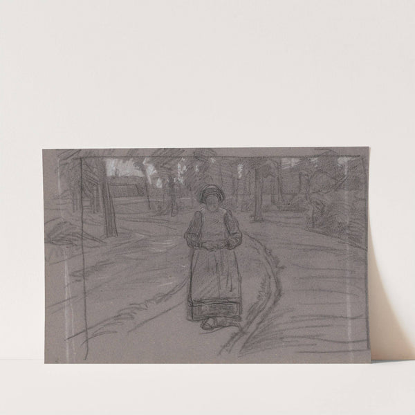 Boerenvrouw op een pad in een boomrijke omgeving by Jan Veth - Wall Art Print