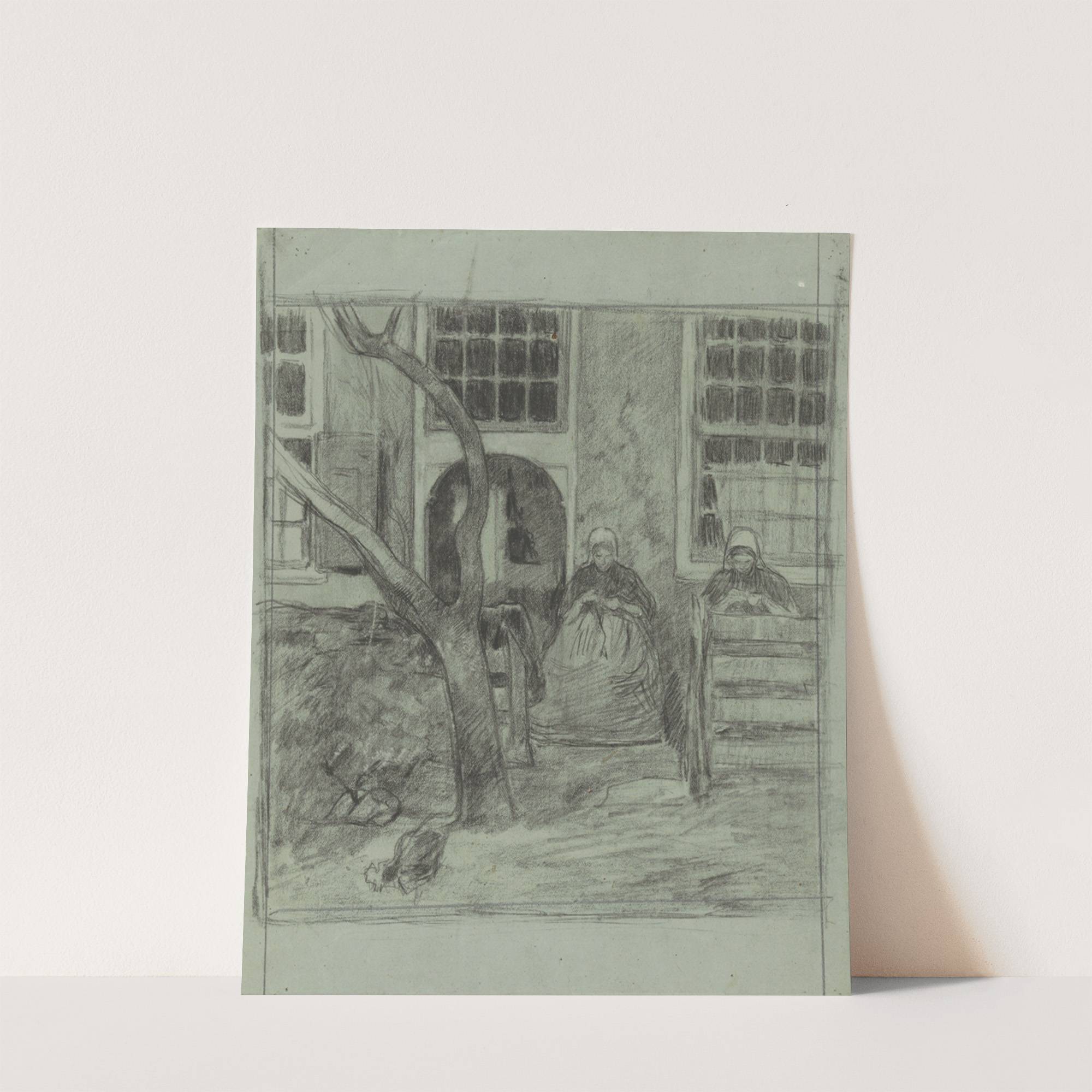 Twee handwerkende vrouwen voor een huis by Jan Veth - Wall Art Print