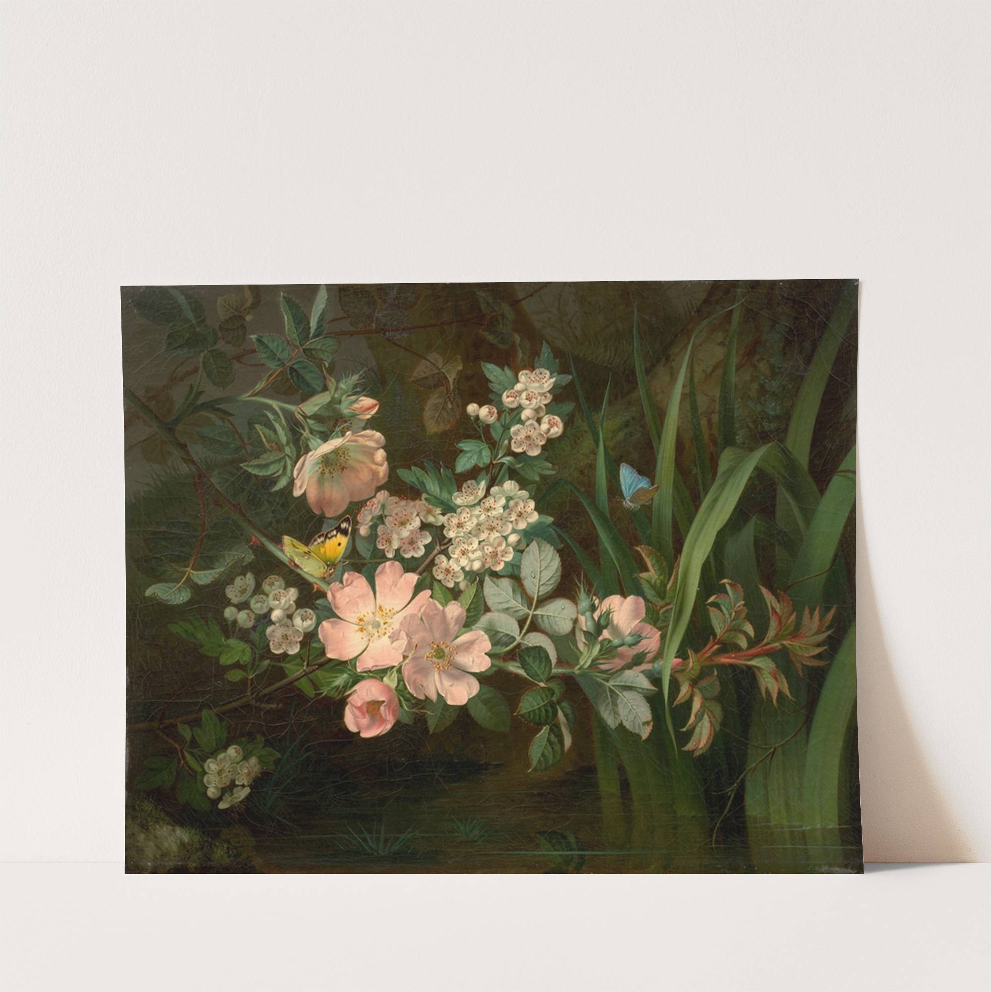 Branchage d’aubépine, de rosier et vol de papillons dans des roseaux by Jean-Baptiste Gallet - Wall Art Print