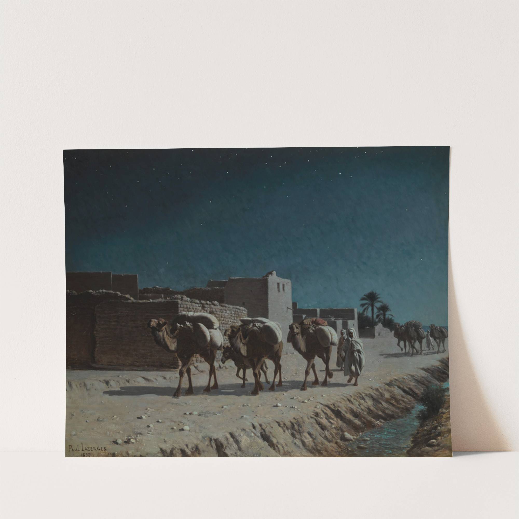 Camel Train By Moonlight by Jean Baptiste Paul Lazerges - Wall Art Print