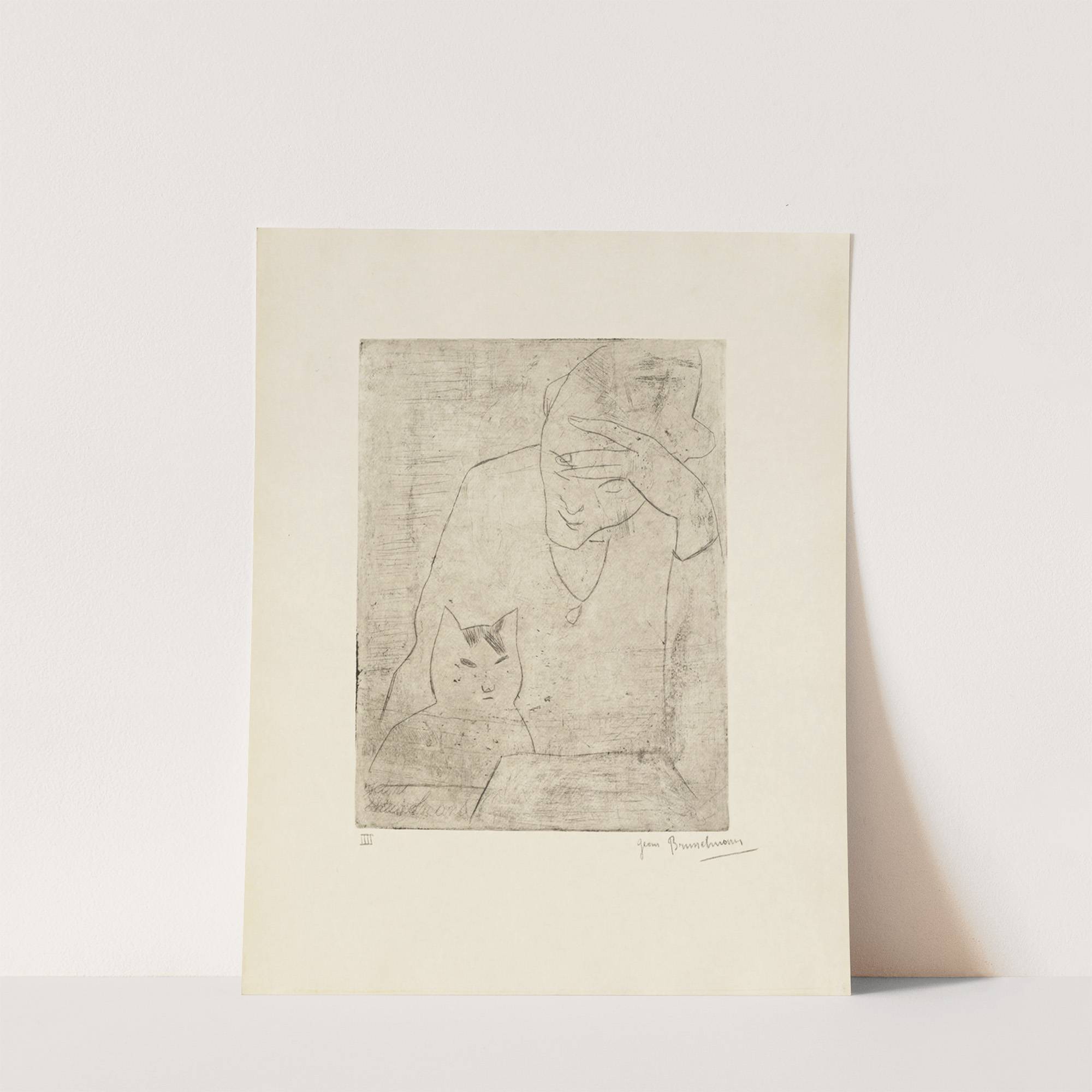 Lezende vrouw met kat (1920) by Jean Brusselmans - Wall Art Print