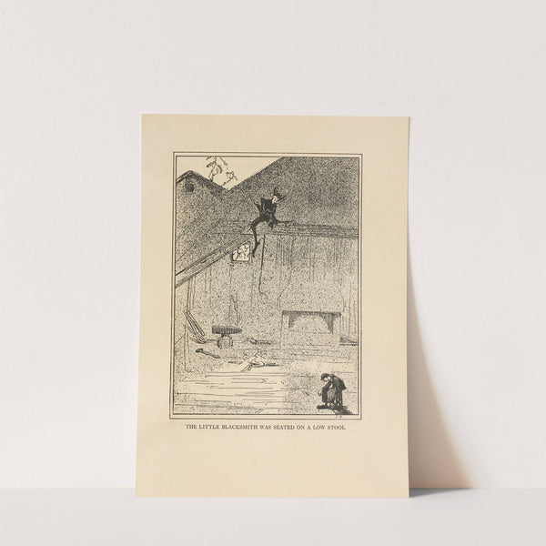 The little Blacksmith was seated on a low Stool by Jean de Bosschère - Wall Art Print