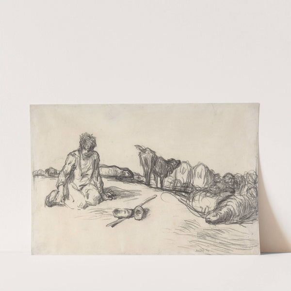 A Seated Shepherd with His Dog and Sheep by Jean-François Millet - Wall Art Print