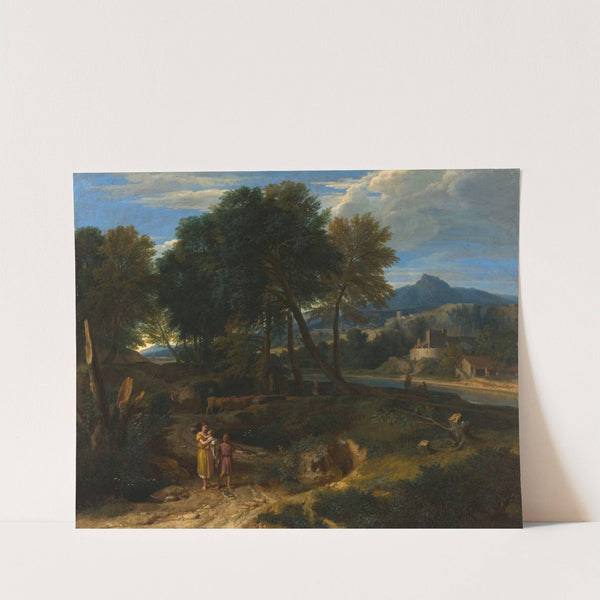 Pastorale avec un jeune pâtre et une femme avec un enfant dans les bras by Jean-François Millet - Wall Art Print