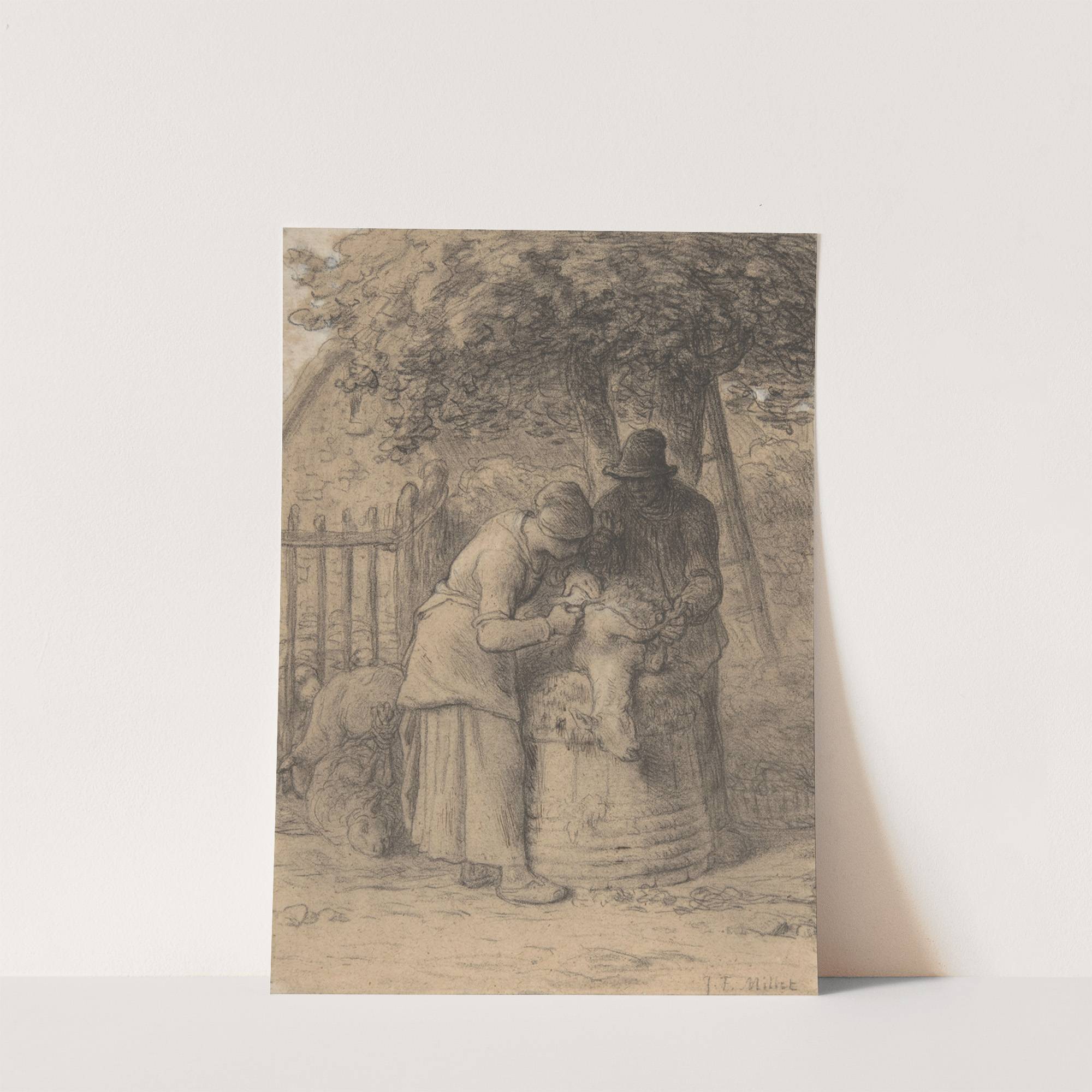 Sheepshearing Beneath a Tree by Jean-François Millet - Wall Art Print