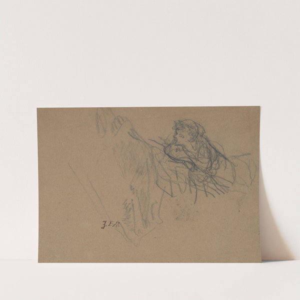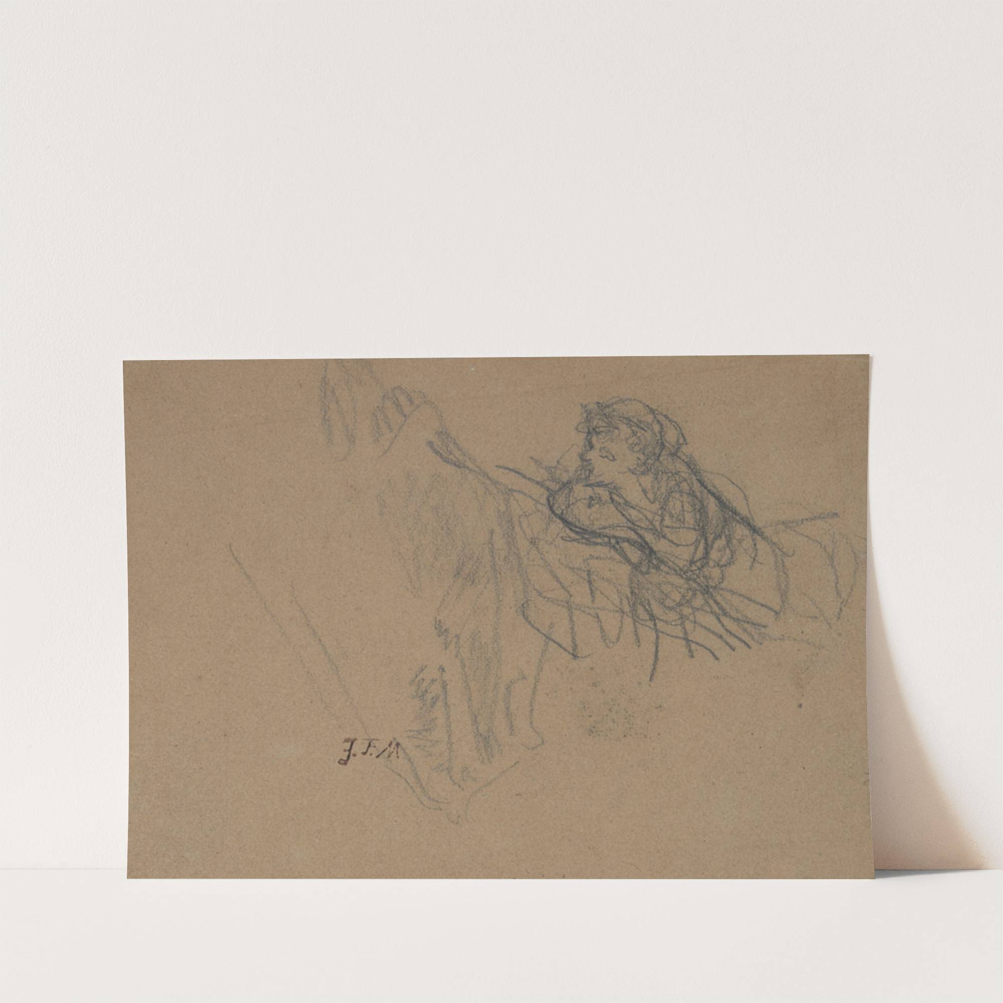 Young Boy Reclining on Elbows, Admiring a Shepherdess by Jean-François Millet - Wall Art Print