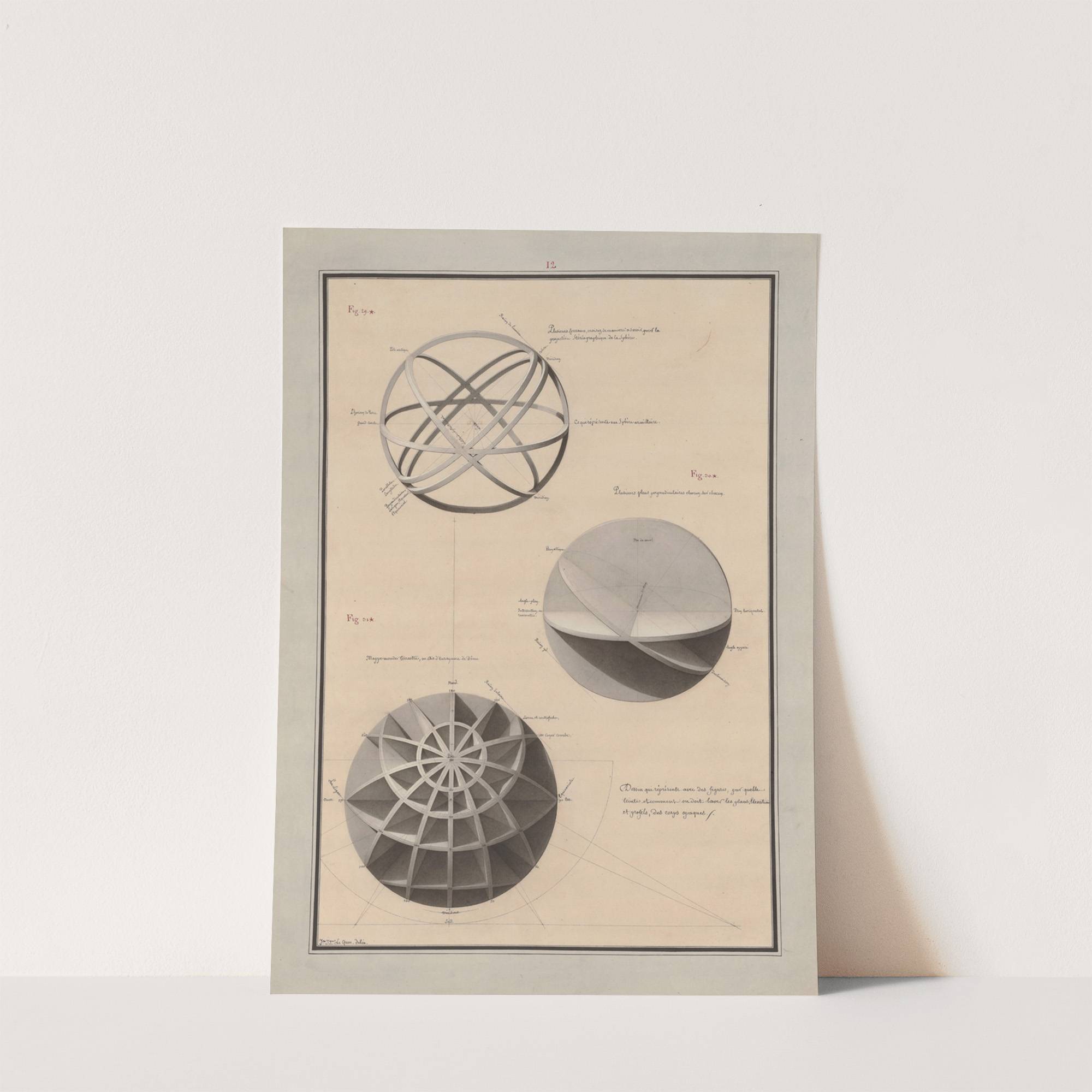 Dessin qui représente avec des figures, par quelle(s) teintes, et comment on doit laver les plans, élévations, et profils, des corps opaques (1777-1825) by Jean Jacques Lequeu - Wall Art Print