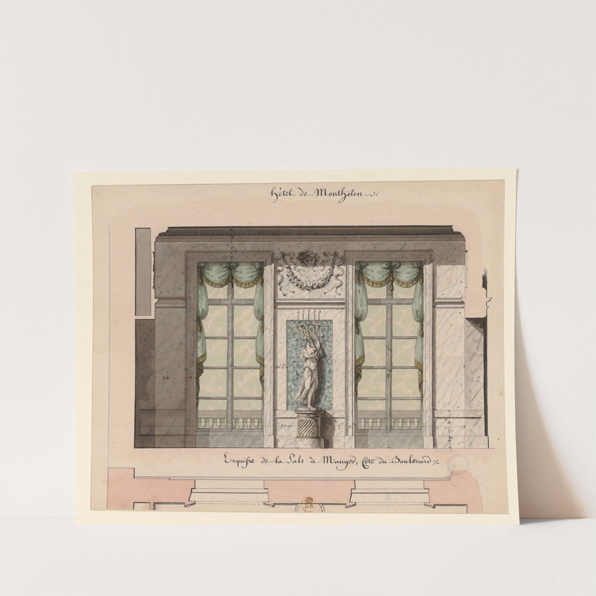 Hôtel de Montholon. Esquisse de la sale à manger, côté du boulevard (1786) by Jean Jacques Lequeu - Wall Art Print