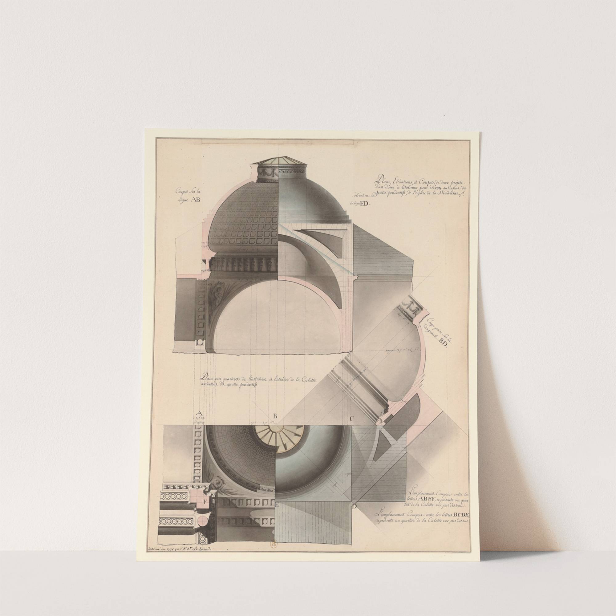 Plans, élévations, et coupes, de deux projets d’un dôme à litalienne, pour élever au-dessus des quatre pendentifs, de l’église de la Madeleine (1775) by Jean Jacques Lequeu - Wall Art Print