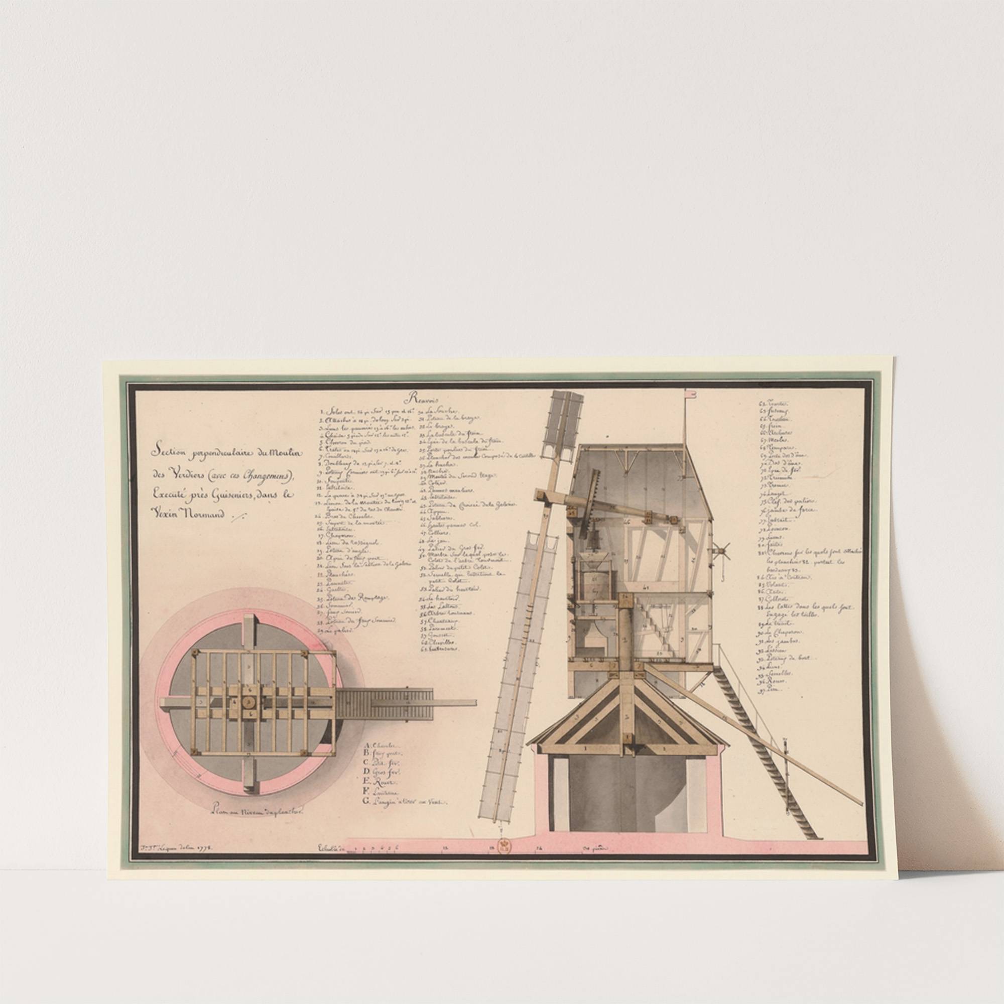 Section perpendiculaire du moulin des Verdiers (avec des changemens), exécuté près Guiseniers, dans la Vexin Normand ; Plan au niveau du plancher (1778_1777-1825) by Jean Jacques Lequeu - Wall Art Print