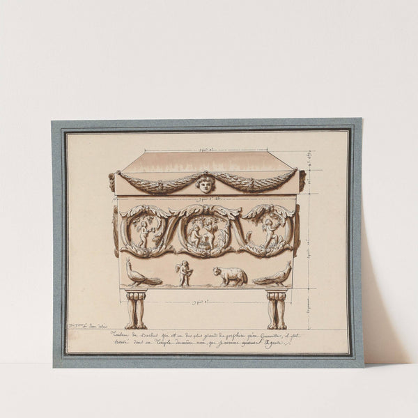 Tombeau de Bachus qui est un des plus grands de porphire qu’on connoisse, il fut trouvé dans un Temple du même nom, qui se nomme aprésent S. Agnese (1777-1825) by Jean Jacques Lequeu - Wall Art Print