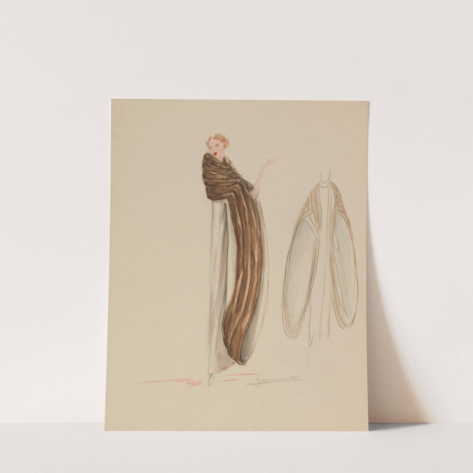 Manteau blanc à manches évasées bordées de fourrure brune (1938) by Jeannette - Wall Art Print