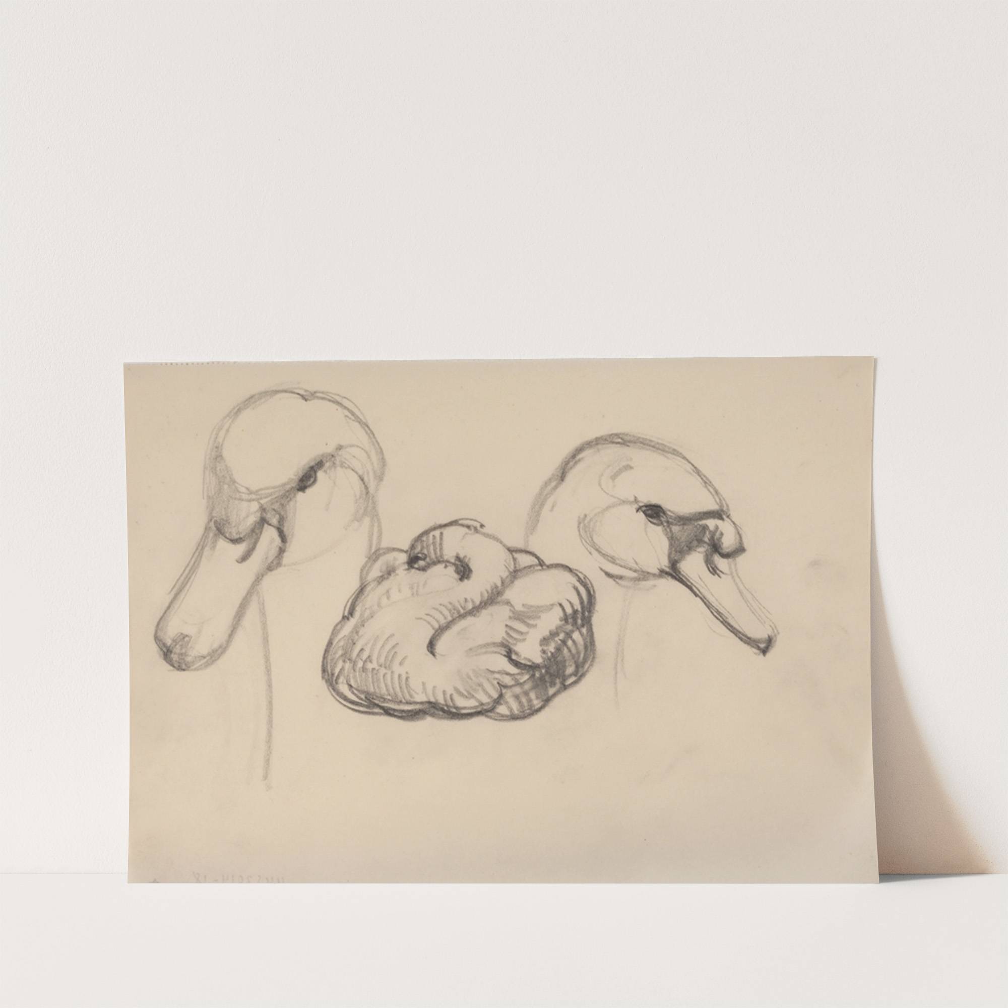 Svane og hoveder af svaner by Jens Adolf Jerichau - Wall Art Print