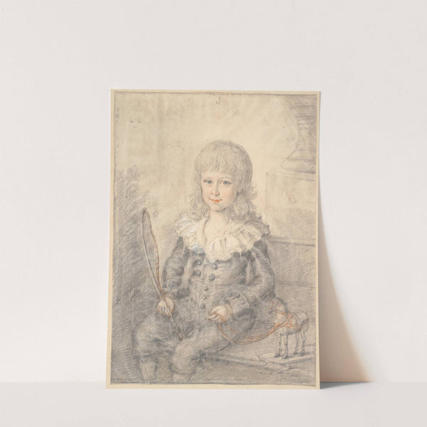 Portræt af dreng med en legetøjshest by Jens Juel - Wall Art Print