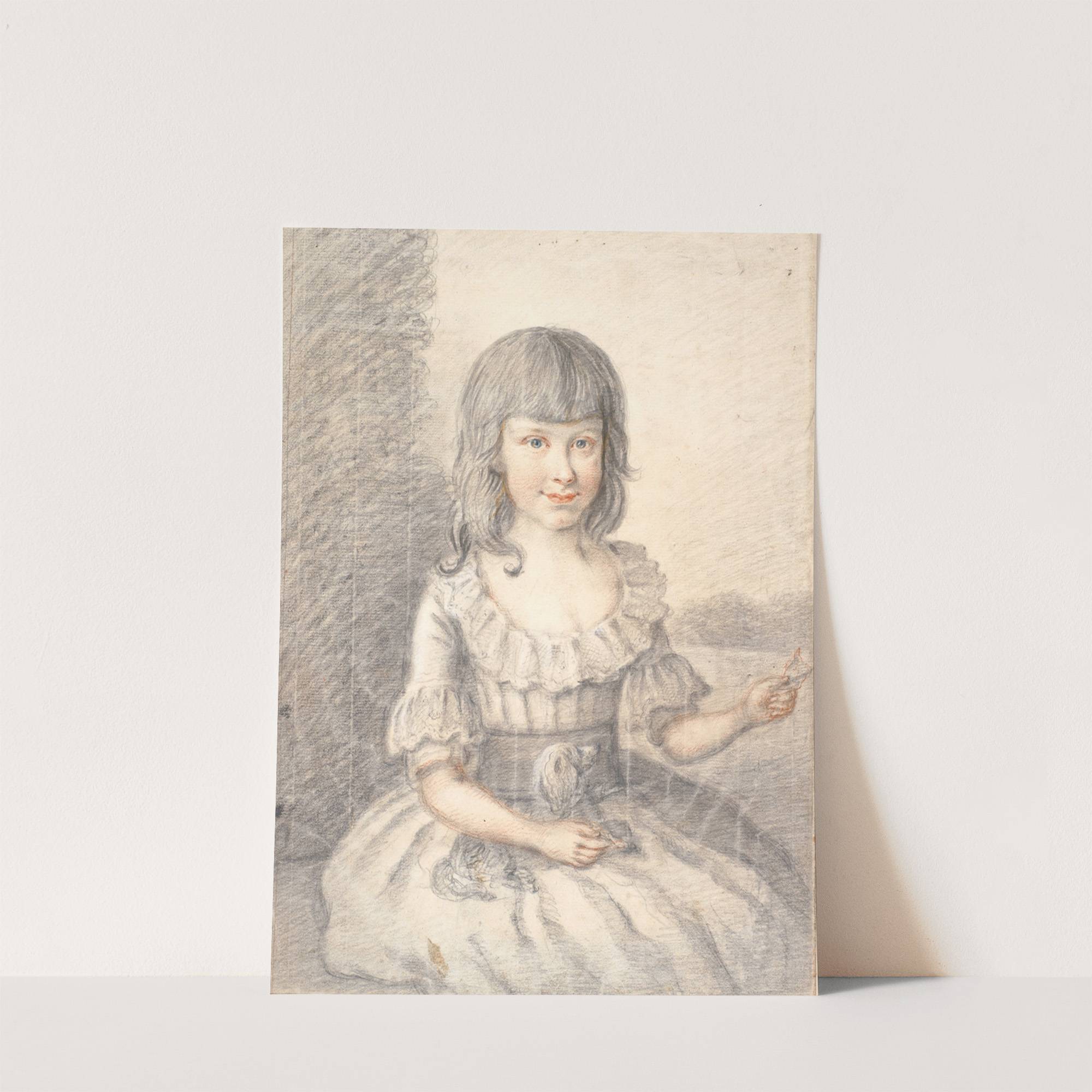 Portræt af en lille pige med en hund by Jens Juel - Wall Art Print