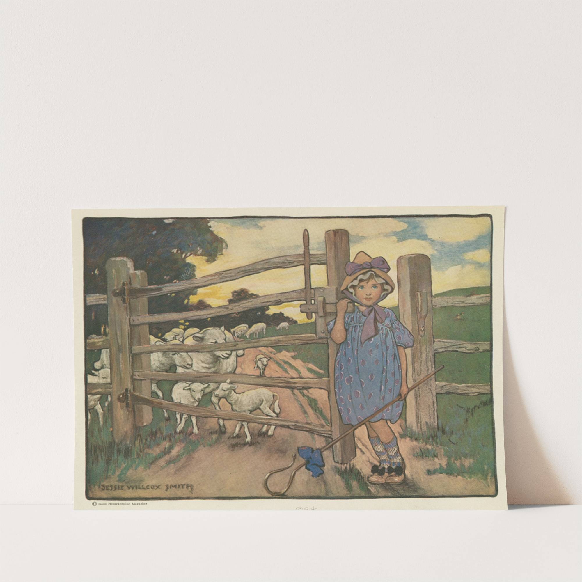 Little Bo-Peep has lost her sheep, and can’t tell where to find them. by Jessie Willcox Smith - Wall Art Print