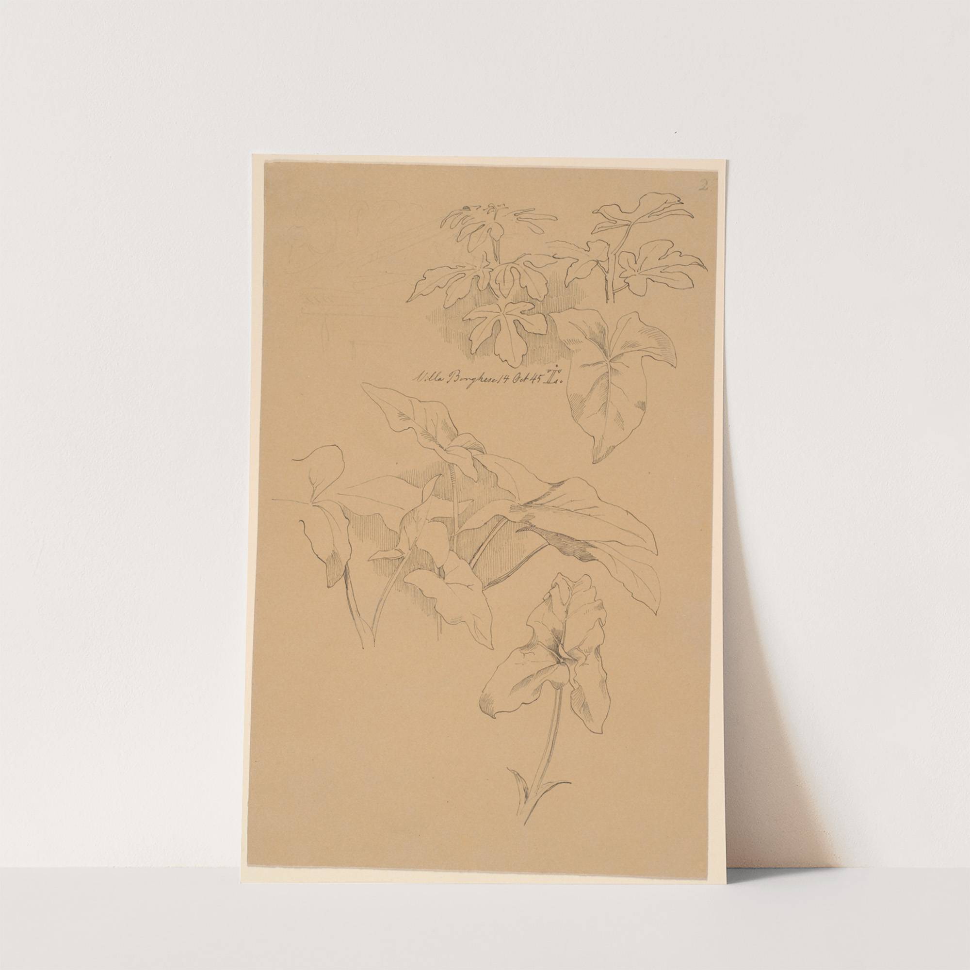 Bladstudier bla af en Kala Øverst- blyantskrads af fronton by Johan Thomas Lundbye - Wall Art Print