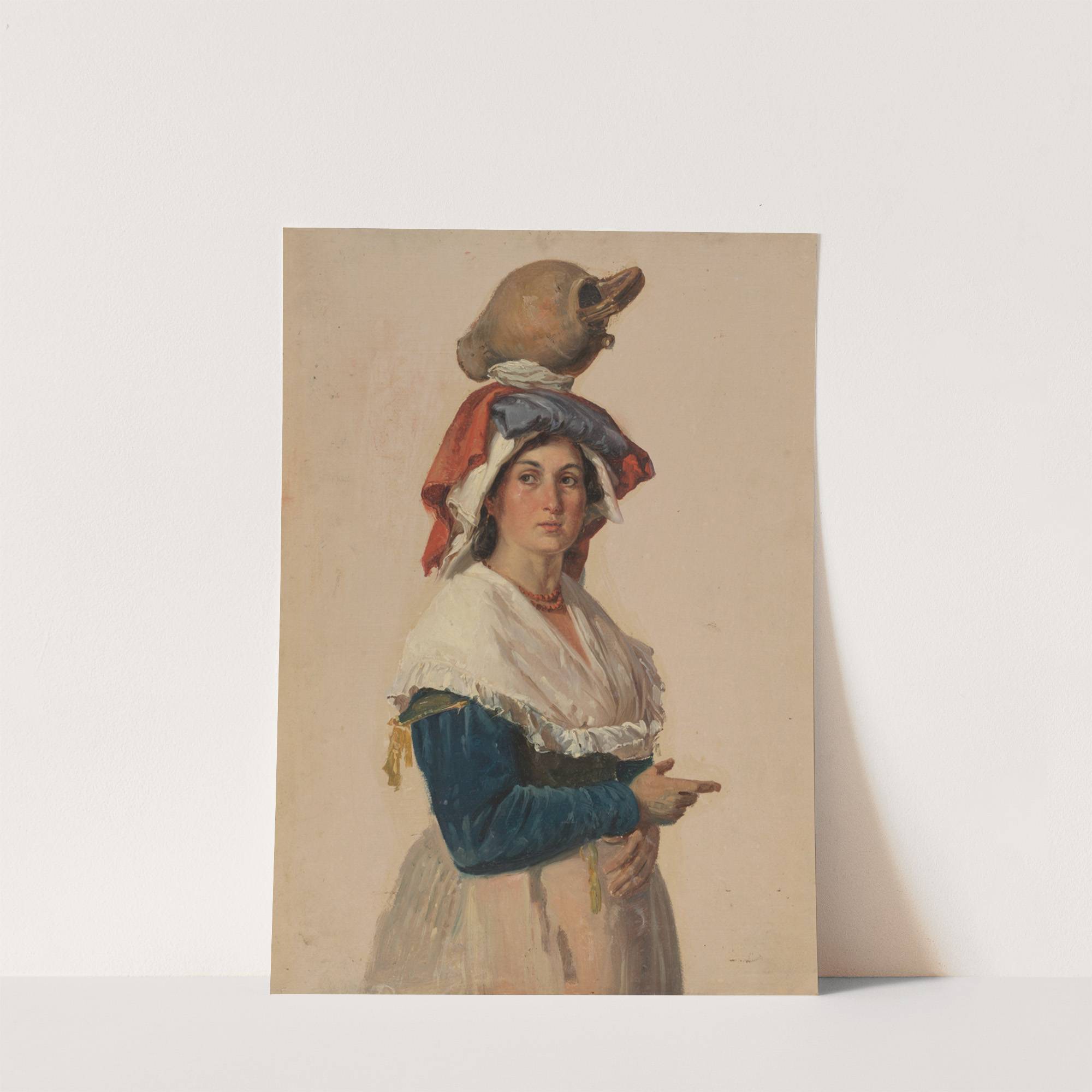 Halbfigur einer jungen Italienerin in Tracht, einen Krug auf dem Kopf tragend by Johann Baptist Kirner - Wall Art Print