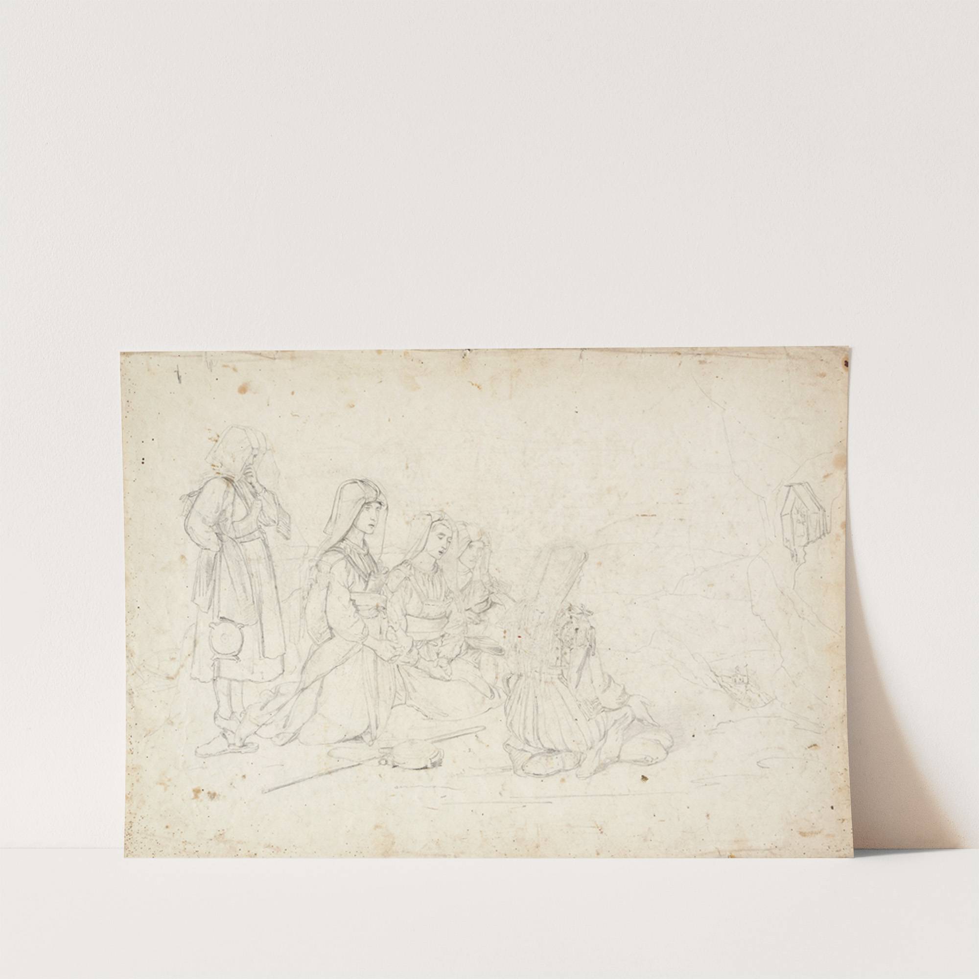 Italian peasants at prayer in front of a wayside shrine by Johann Baptist Kirner  - Wall Art Print