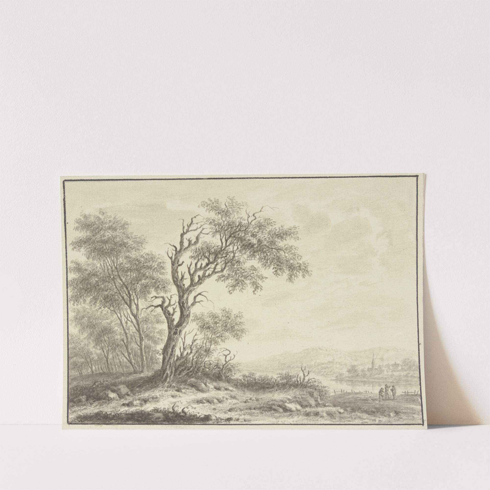 Baumgruppe an einem Flußufer, im Hintergrund ein Dorf by Johann Caspar Zehender - Wall Art Print