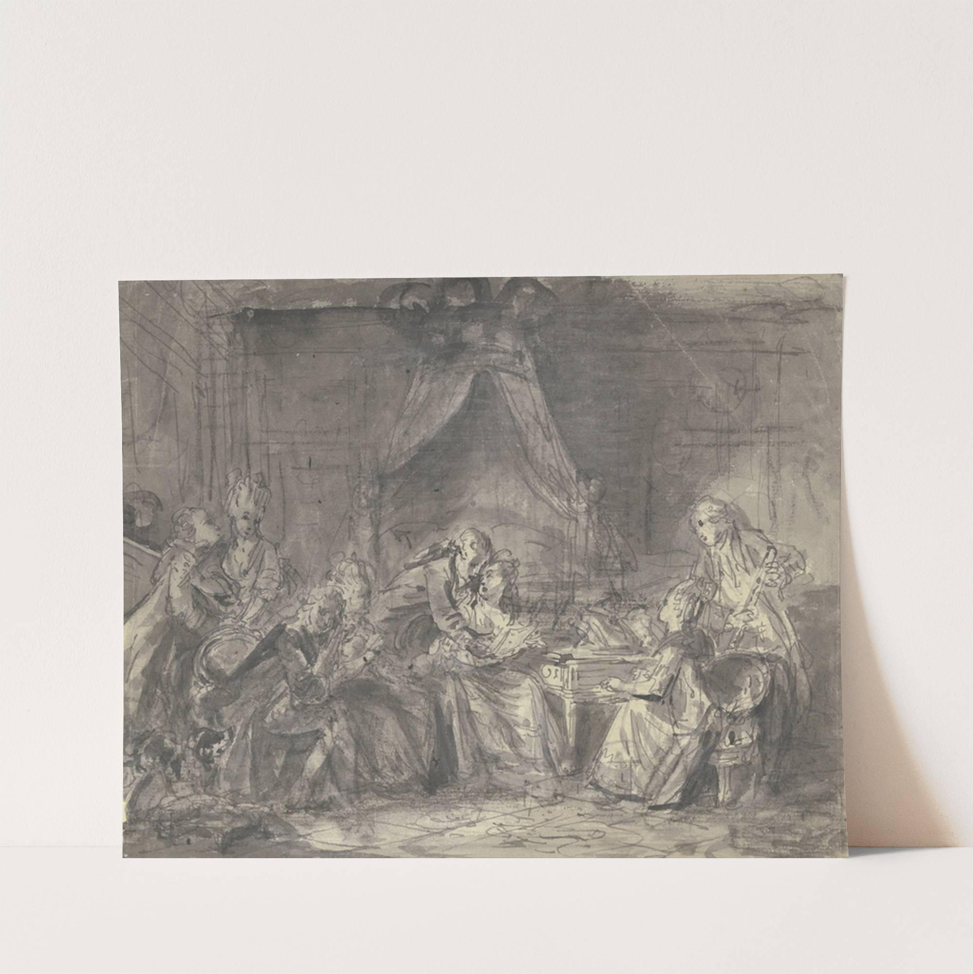 Kammermusik, neben einer Spinettspielerin steht ein Flötist, links ein singendes Paar und eine Zuhörergruppe by Johann Eleazar Schenau - Wall Art Print