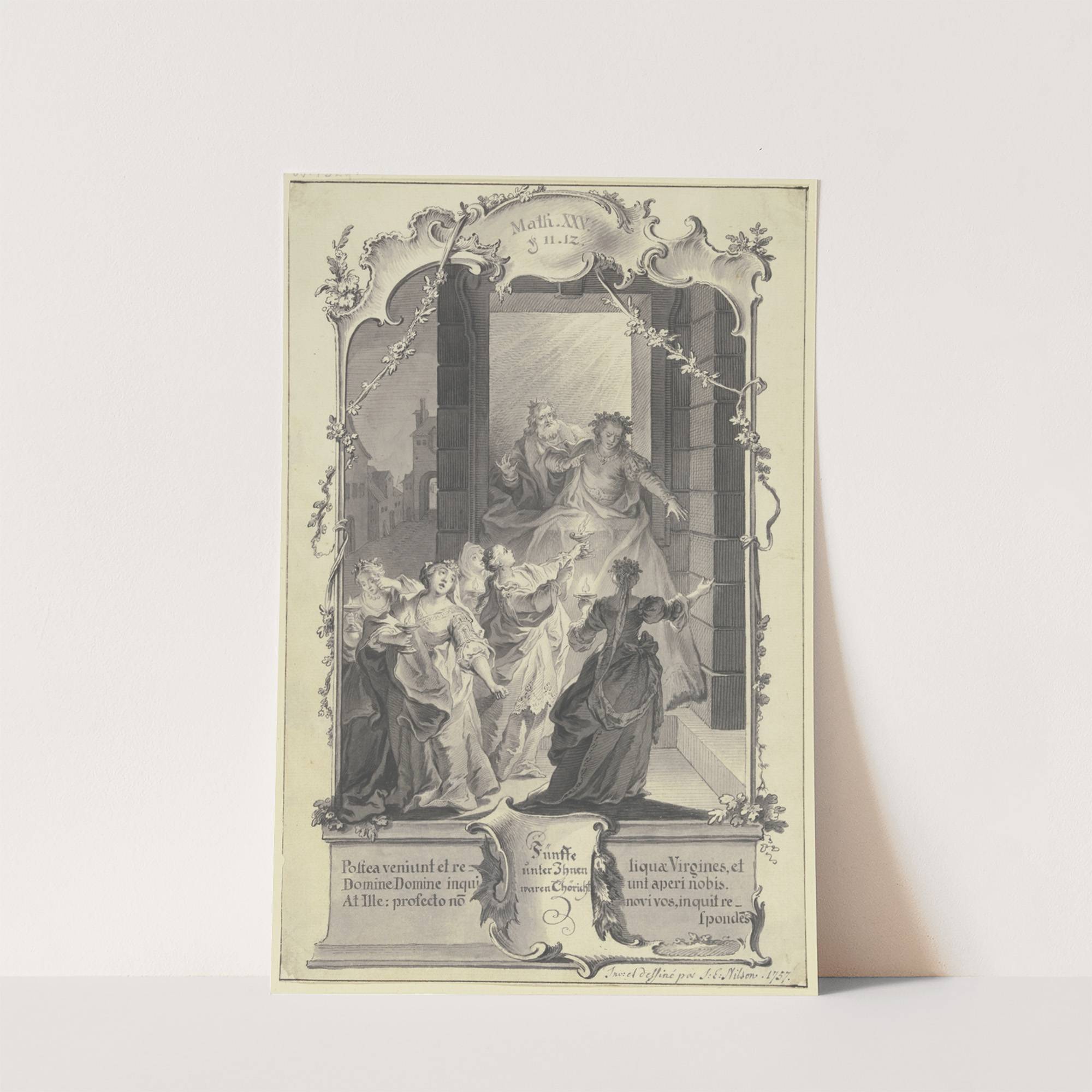 Der Bräutigam und die fünf törichten Jungfrauen by Johann Esaias Nilson - Wall Art Print